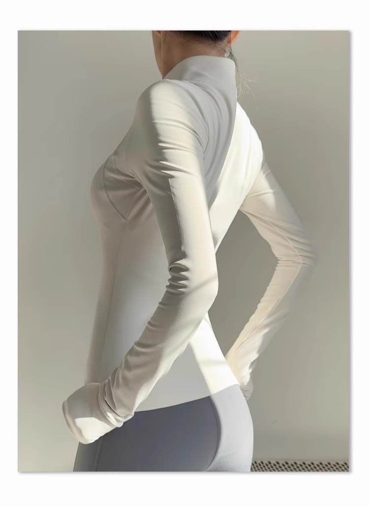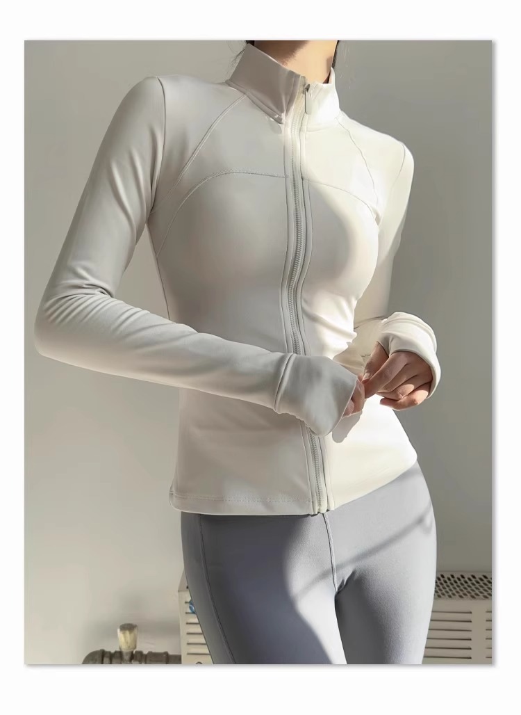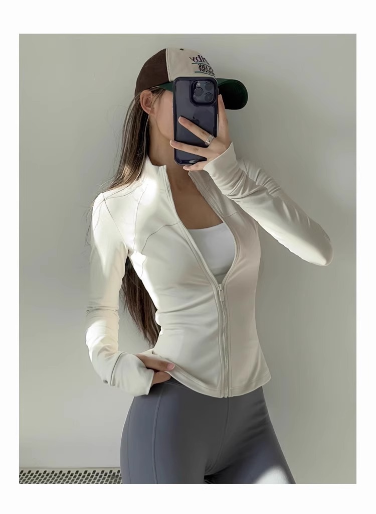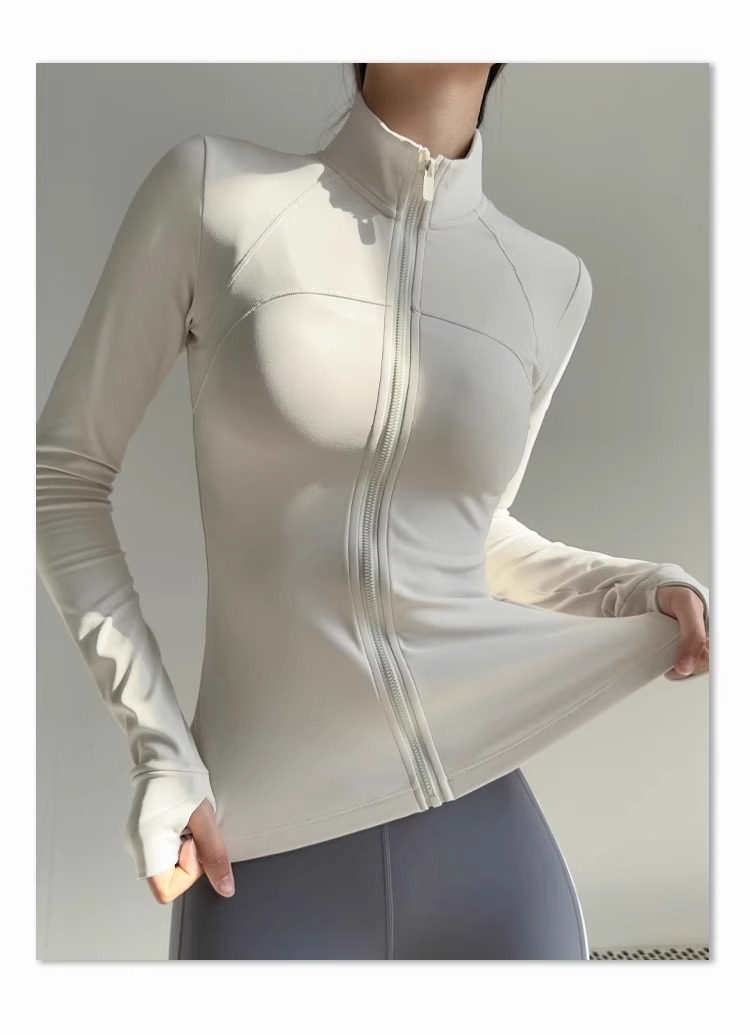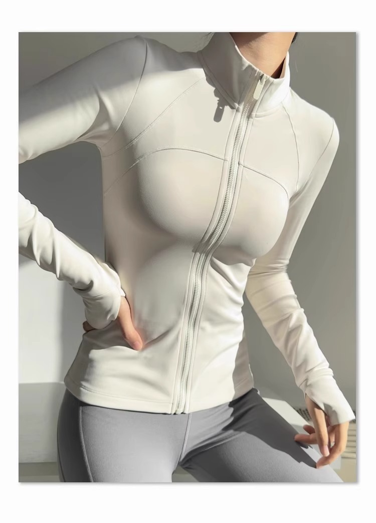 女性用スタンドカラーヨガジャケット、ランニングスポーツフィットネスウェア、長袖日焼け止め速乾ウェア、ルルと同じスタイルのヨガトップス