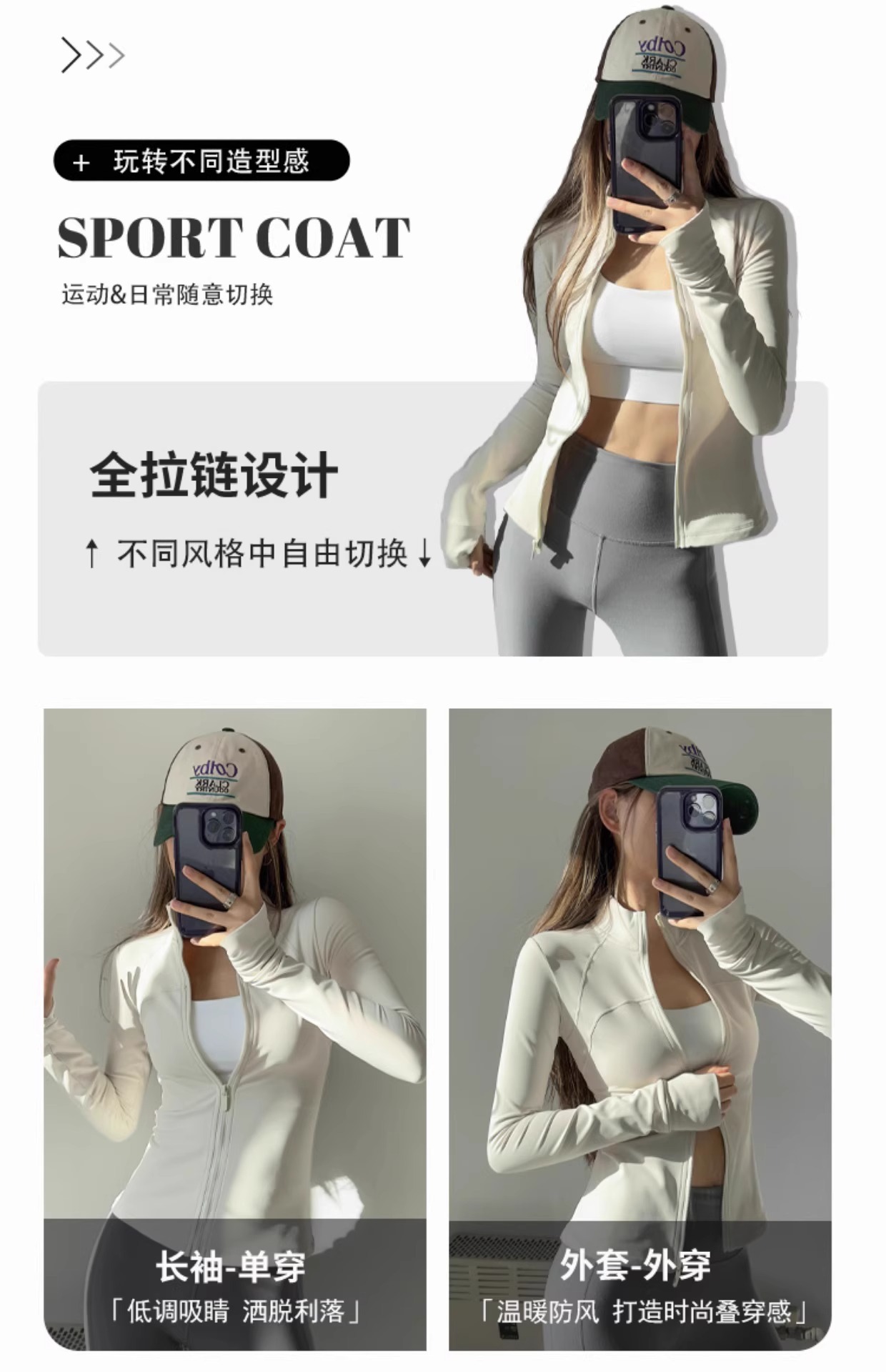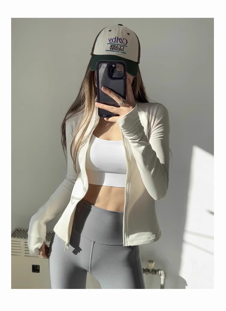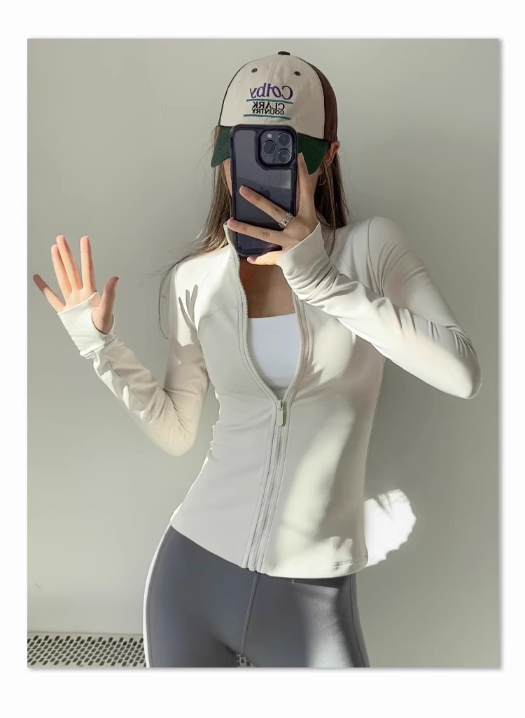 春の速乾性スポーツジャケット、タイトフィットで着痩せ効果のあるヨガウェア、長袖ジッパーカーディガン、ランニングやフィットネスに最適な通気性のあるトップス