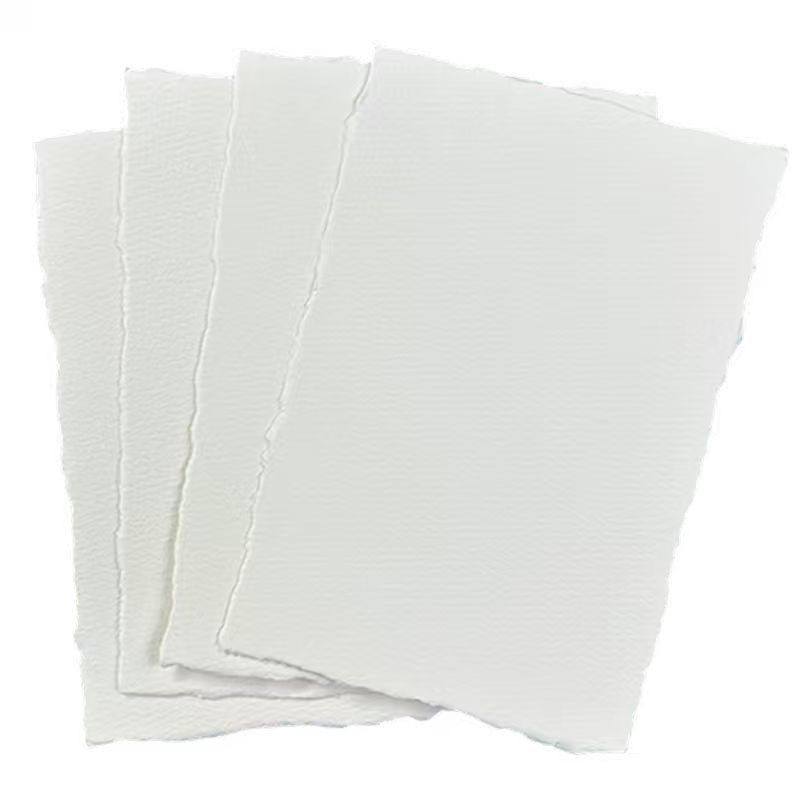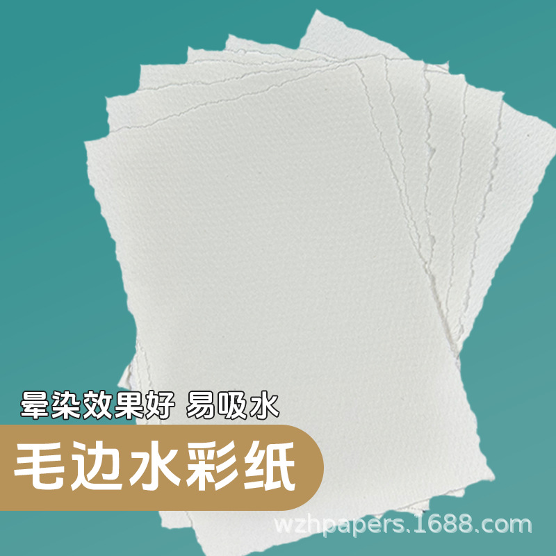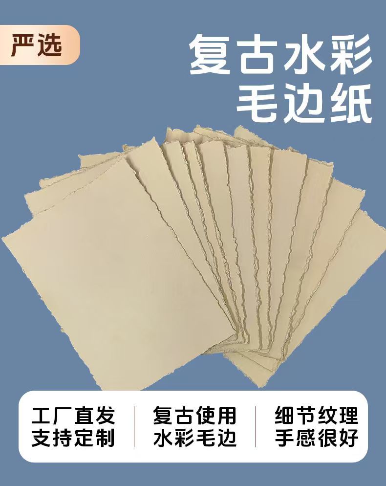 跨境热卖毛边水彩纸纹理手工空白画画纸复古白色卡片棉浆请柬用纸