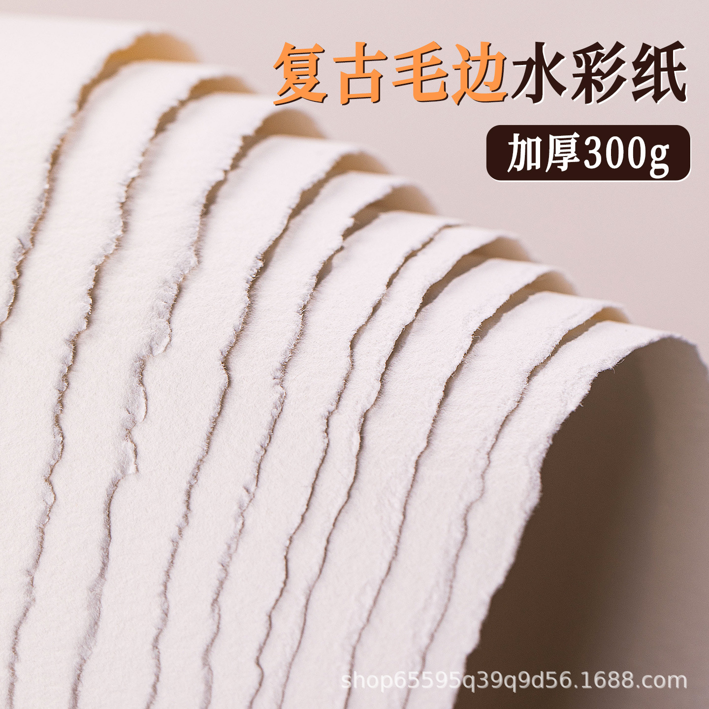 复古毛边水彩纸300g棉浆加厚画画练习纸A4美术生绘画涂色水彩纸