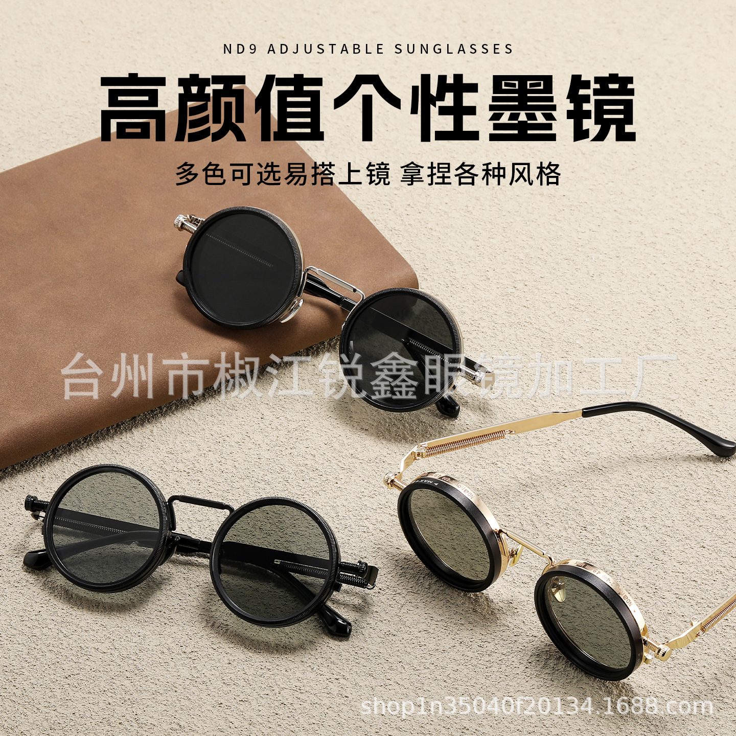 跨境复古圆框 ND9档可调墨镜9级调光无极旋转镜片户外日夜可用开