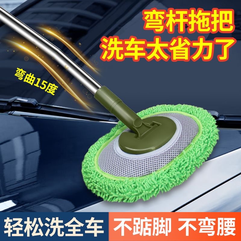 曲げ棒三節伸縮洗車モップ頭雪尼爾絨毛ブラシセット頭絨毛厚手ブラシヘッド部品モップ