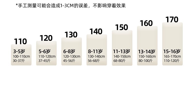 适合身高 110码,120码,130码,140码,150码,160码,170码