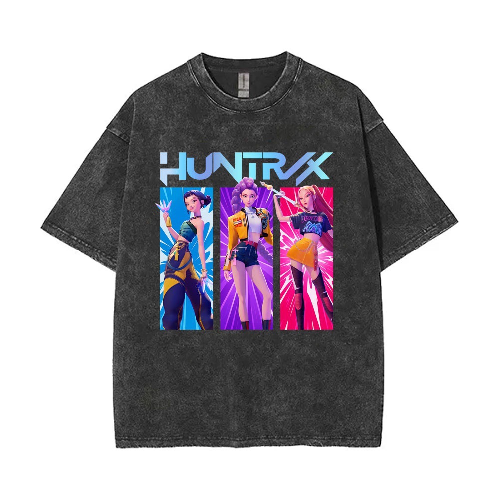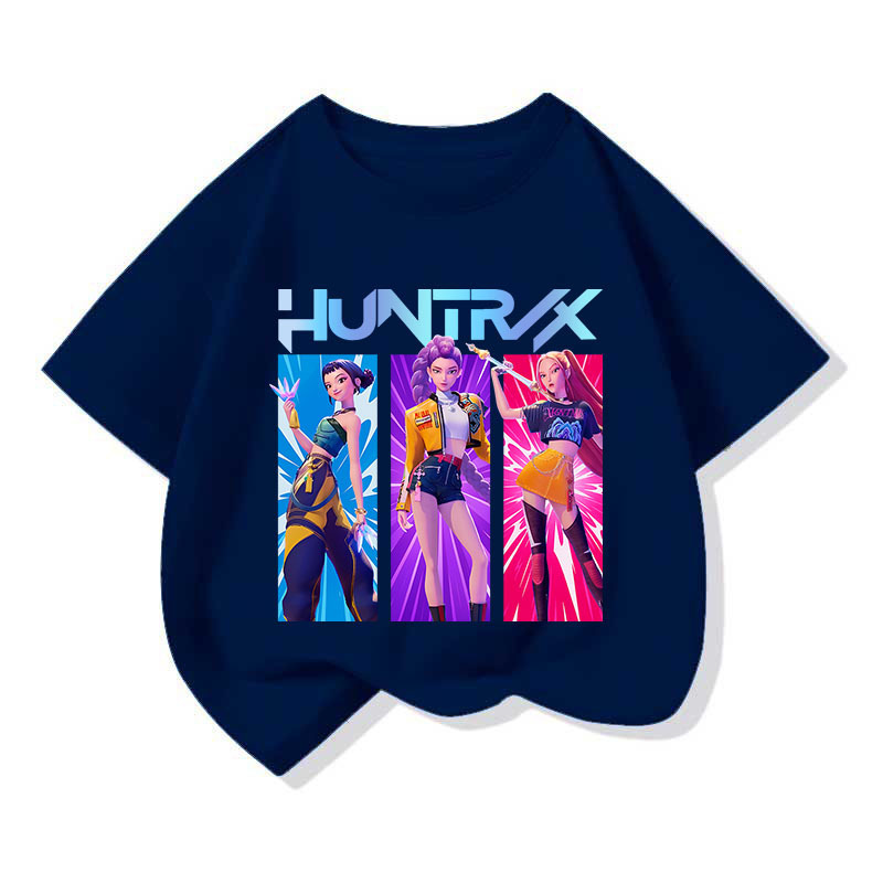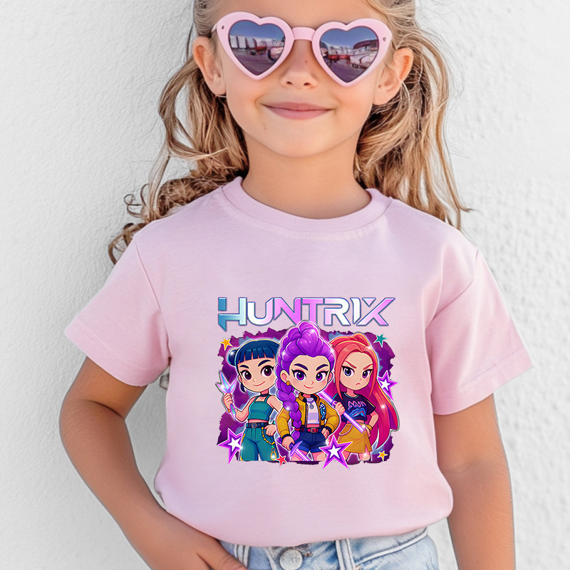 跨境热销HUNTRX猎魔女团卡通印花女童纯棉短袖中大童女孩宽松T恤