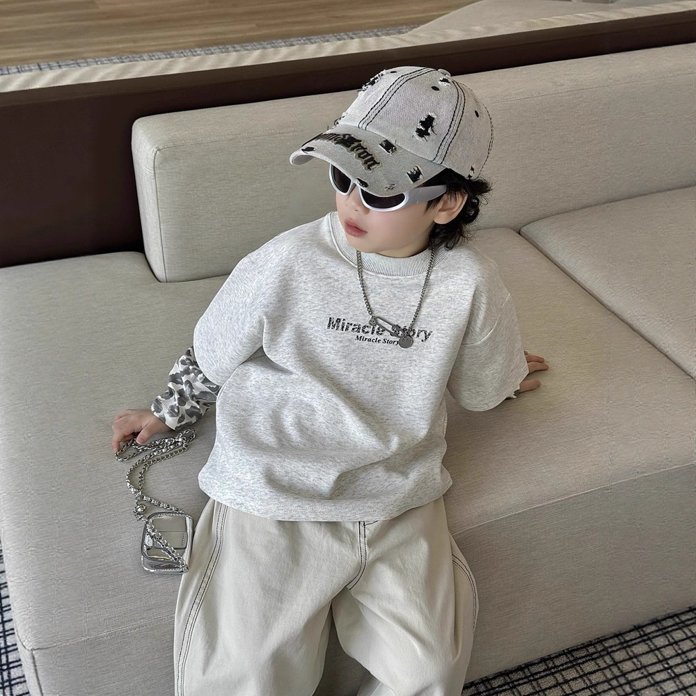 男の子秋フェイクツーピースTシャツ子供韓国風ゆったり長袖男の子秋服クールでハンサムなカジュアルトップス