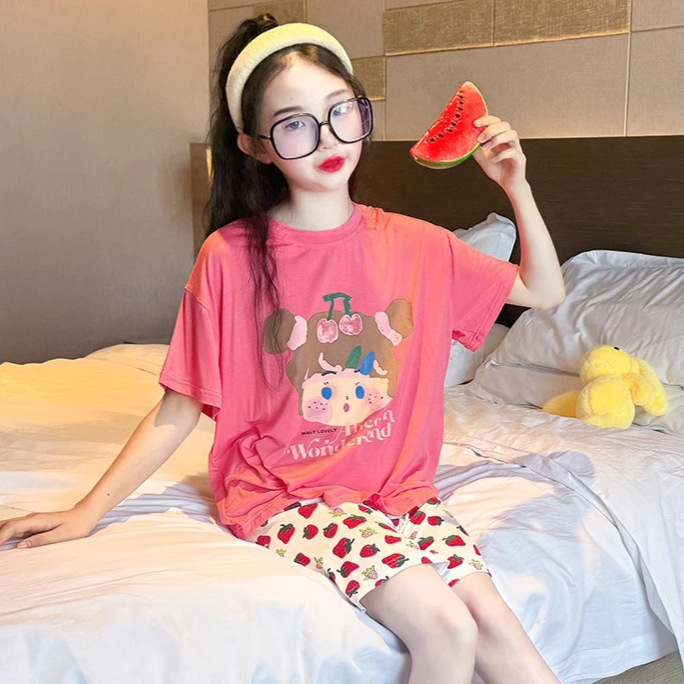 女子パジャマセット 中学生女子 薄手半袖 漫画 かわいいスタイル ホーム服 子供用 夏用空調服