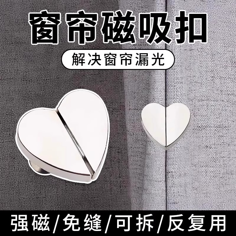 カーテン磁気バックル、ハート型金属磁気バックル、釘不要、取り外し可能、痕跡のない目に見えないバックル、家庭用漏れ防止アーティファクト