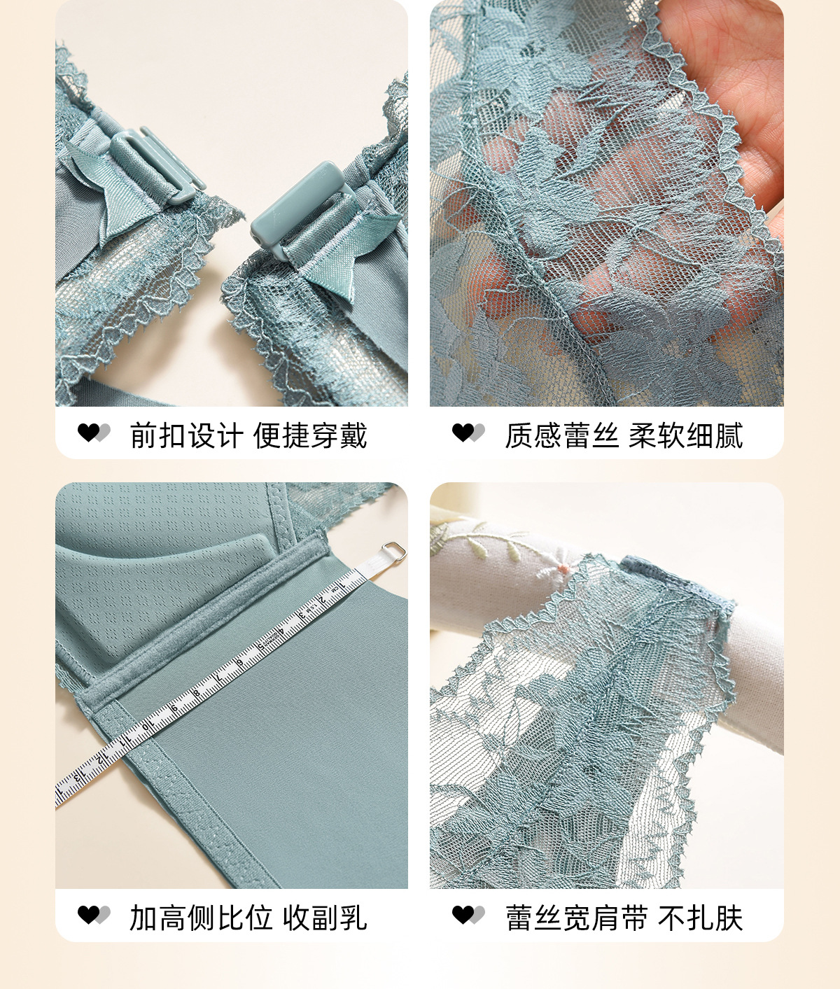 显大前扣内衣女小胸聚拢收副乳防下垂调整型蕾丝无钢圈文胸罩