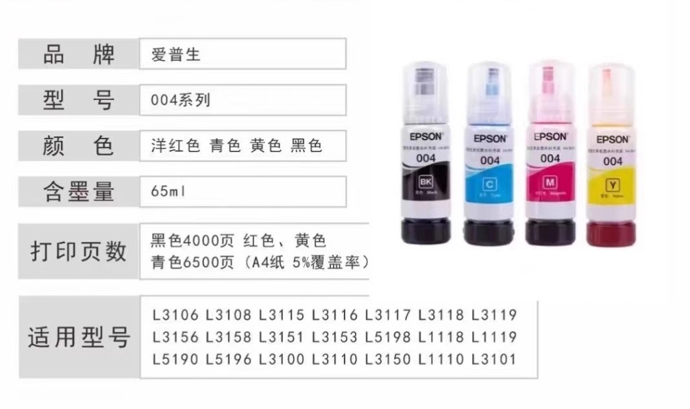 型号 爱普生004墨水