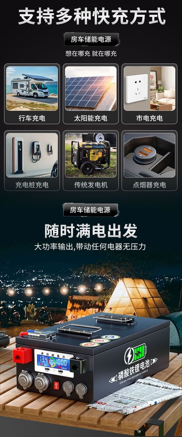 宁德磷酸铁锂房车电池12v24V48伏大容量储能户外电源厂家工厂直销