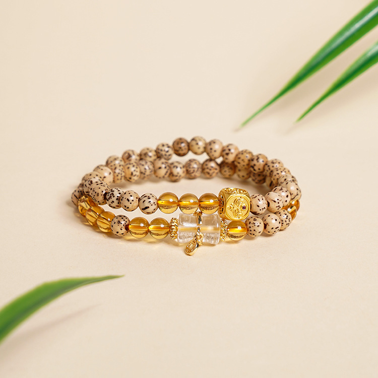 富の腰、天然星月菩提二重丸ブレスレット、クリスタルラッキーブレスレット、仏珠、おもちゃプレートブレスレット