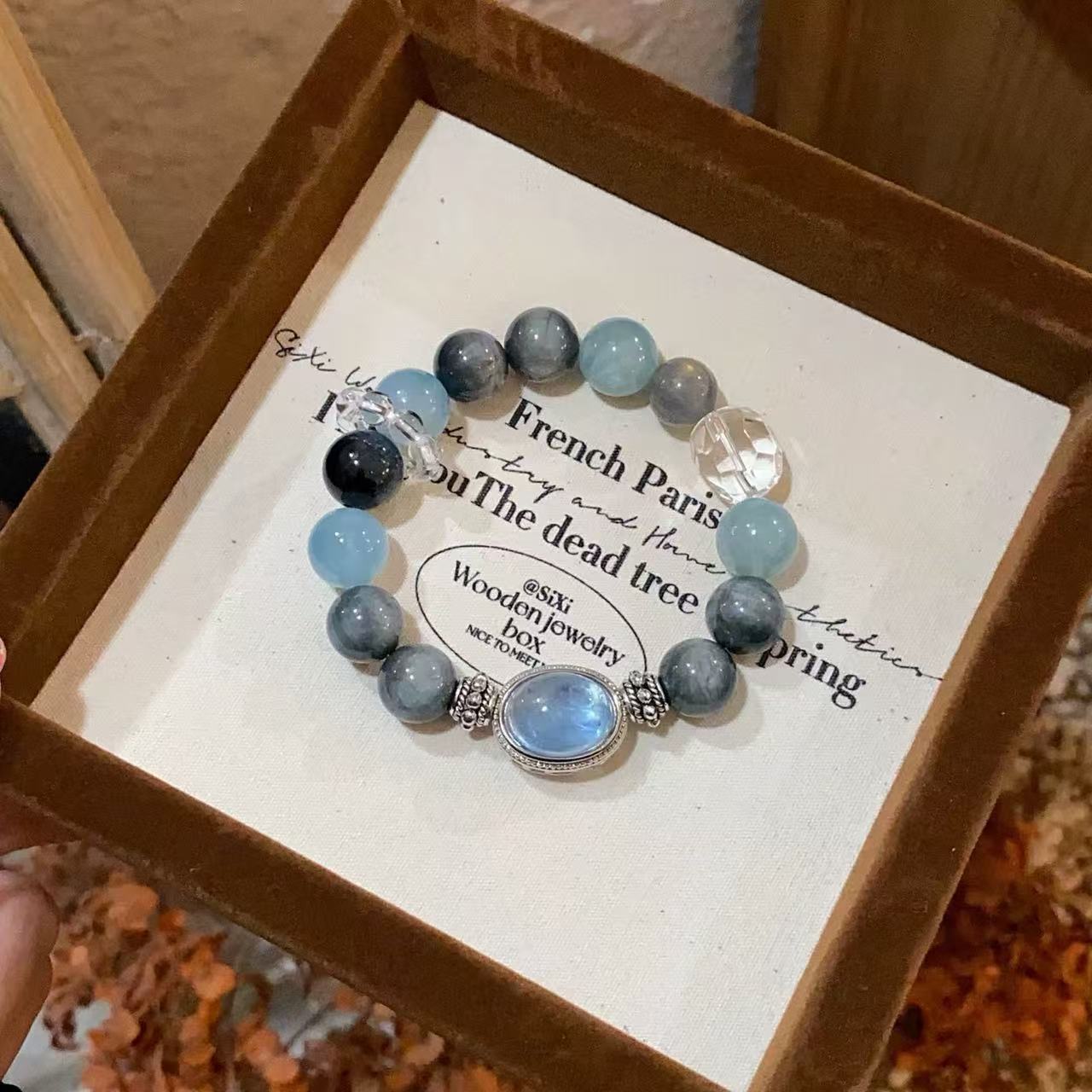天然海藍宝魔箱鷹眼石手串月光石白水晶招財旺業業小衆送閨蜜金水