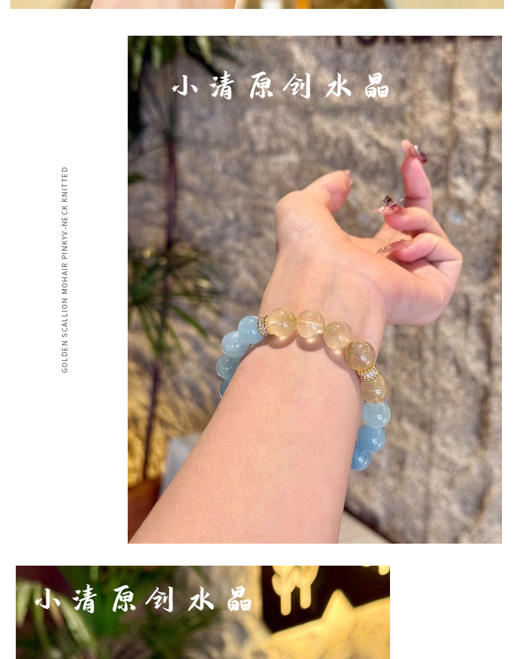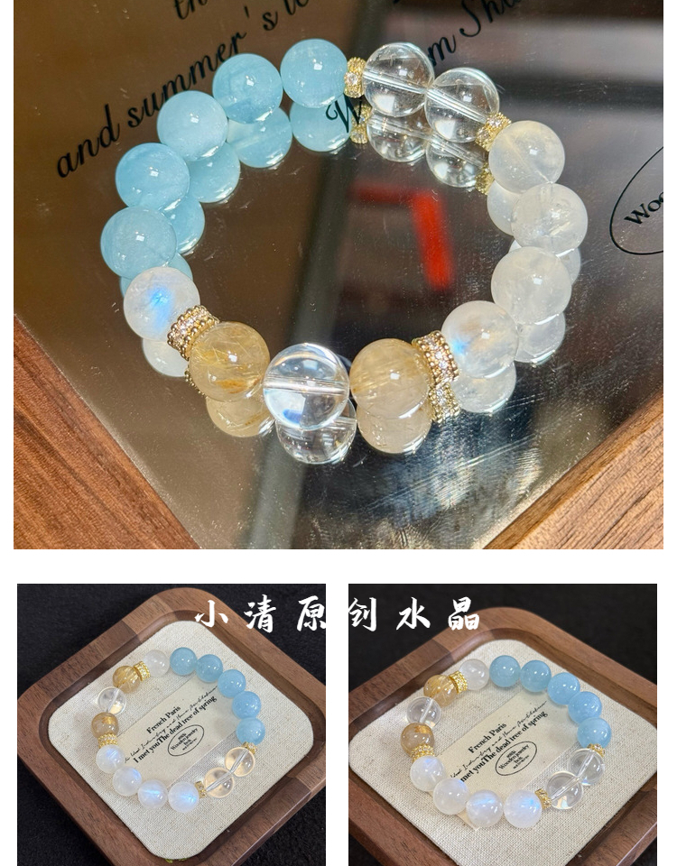 天然海蓝宝石蓝月光石水晶手金发晶白水晶招财水系水水手串