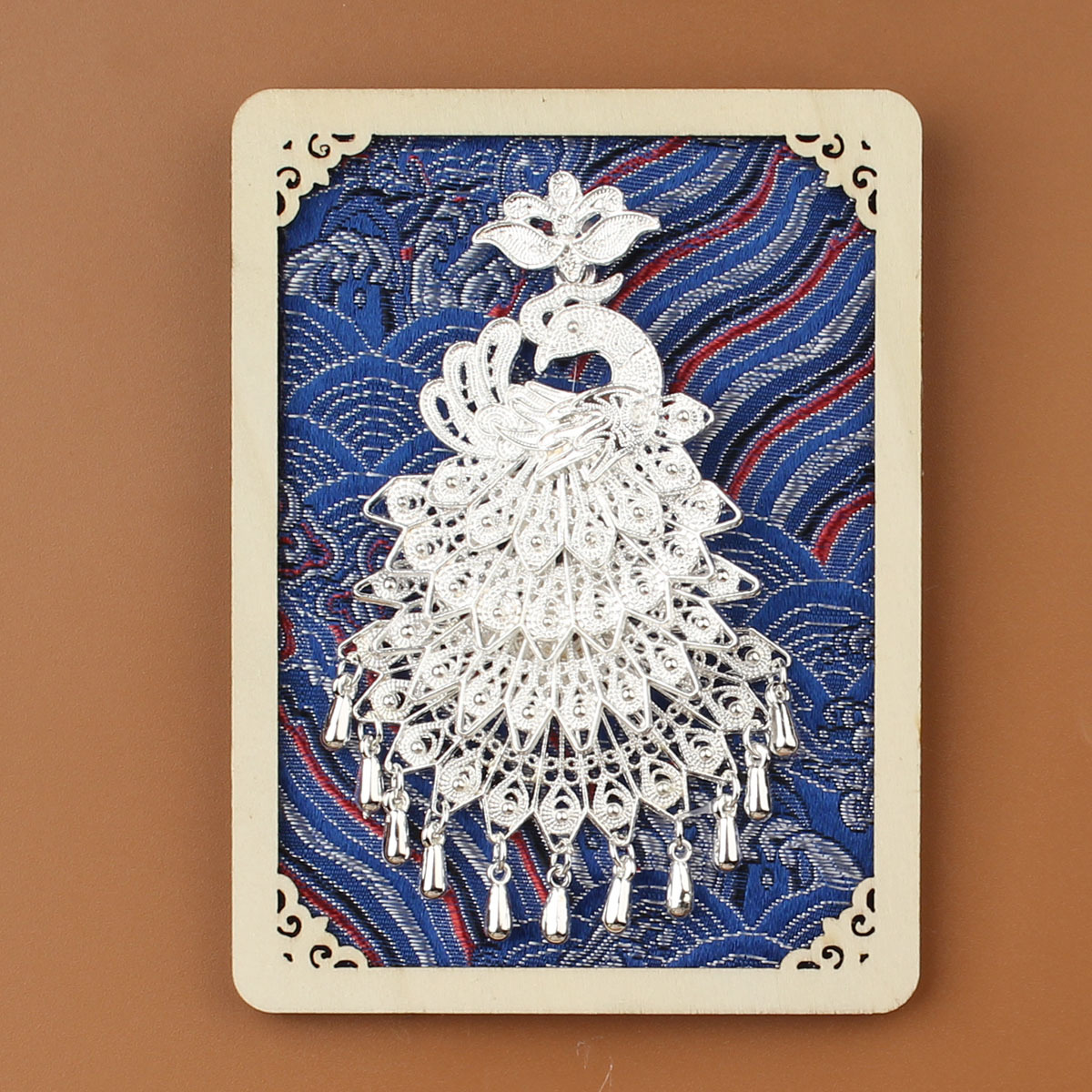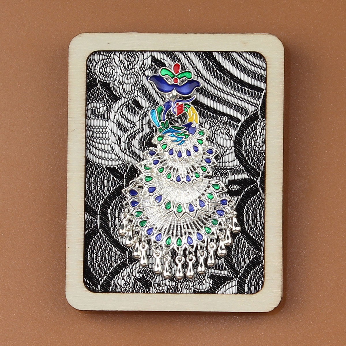 中式宋锦苗银冰箱贴云南贵州苗族特色孔雀民族风傣绣文创礼品故宫
