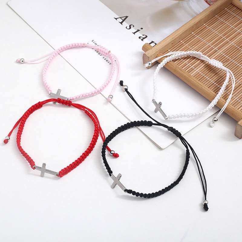 新型クロスボーダーシンプル男女手編みステンレスクロスカップルロープブレスレット女性編み手ロープ卸売り