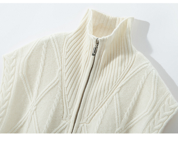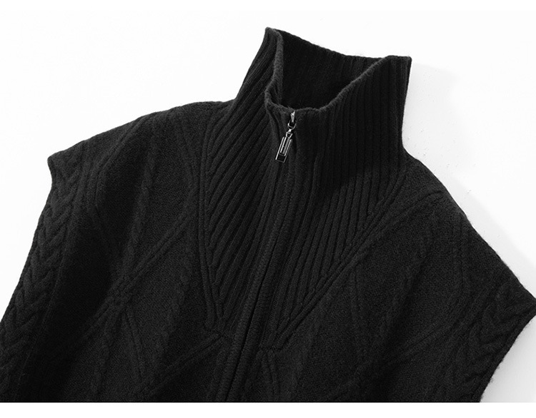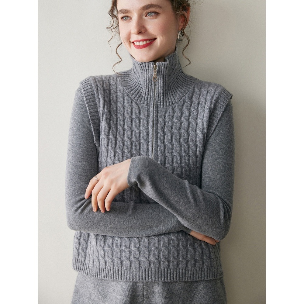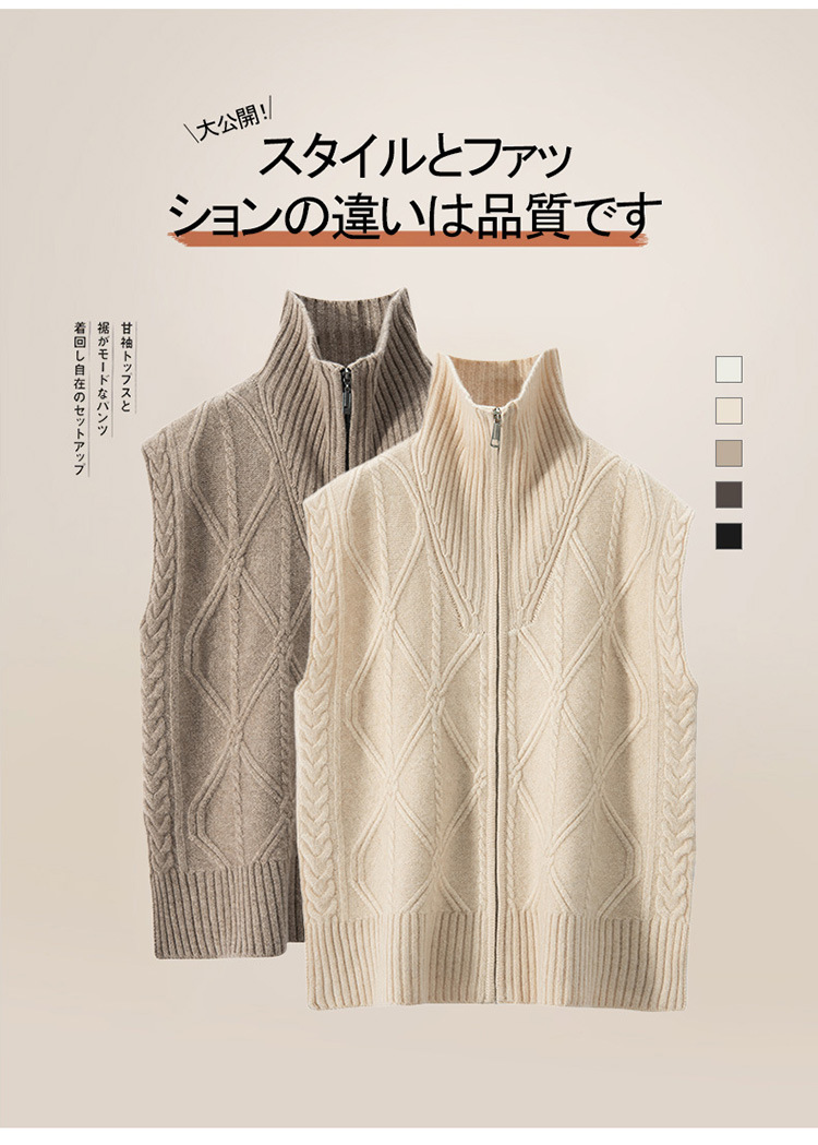 カシミヤ2024秋冬新女性ゆるい馬甲半ファスナー二重襟カン肩ベストノースリーブニットセーター