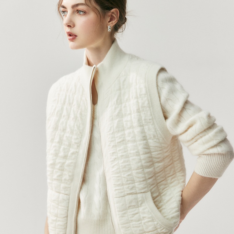 叠穿神器山羊绒马甲女肌理感棉服厚款拉链针织开衫坎肩女装外套