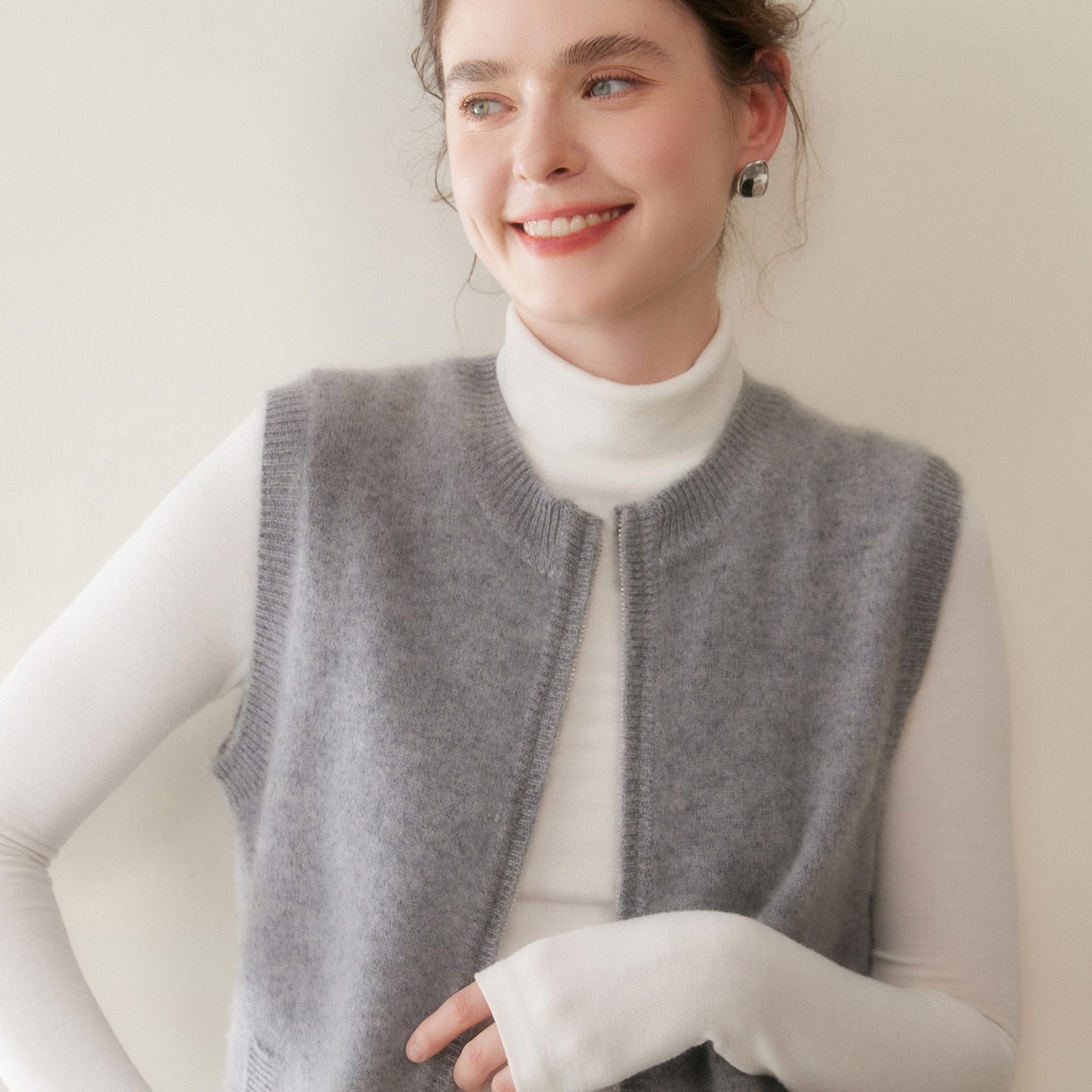 秋冬新款拉链高龄马甲百搭显瘦山羊绒衫女休闲舒适软糯保暖超厚款