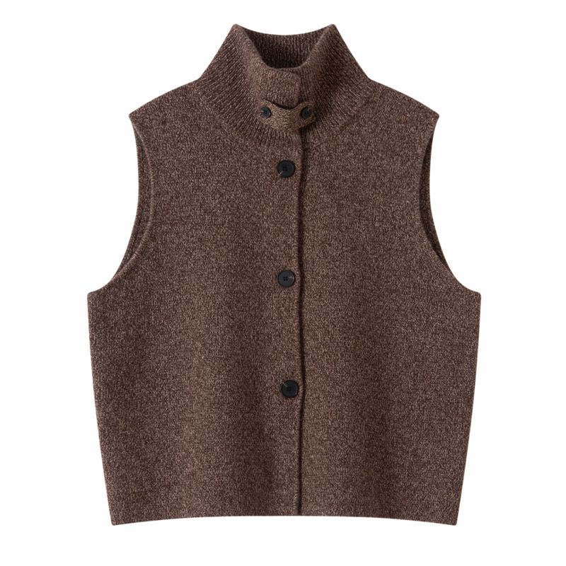 个性设计立领无袖马甲上衣外穿百搭针织100羊毛坎肩外套女秋冬