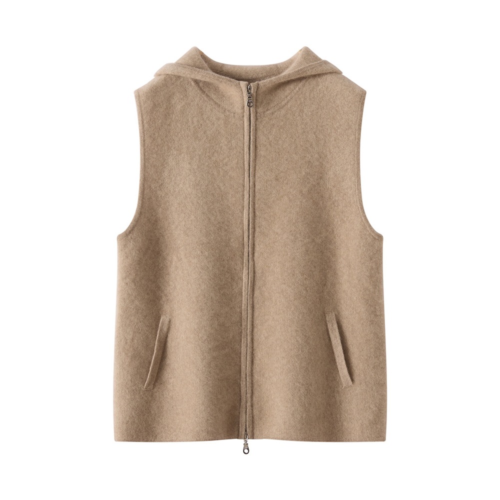 秋冬季新款山羊绒针织马甲时尚通勤百搭无袖坎肩连帽拉链女士洋气