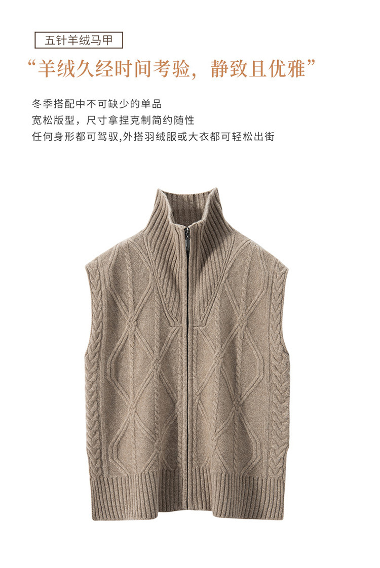 五针高领纯色山羊绒马甲女针织拉链开衫宽松显瘦外搭坎肩秋冬新款