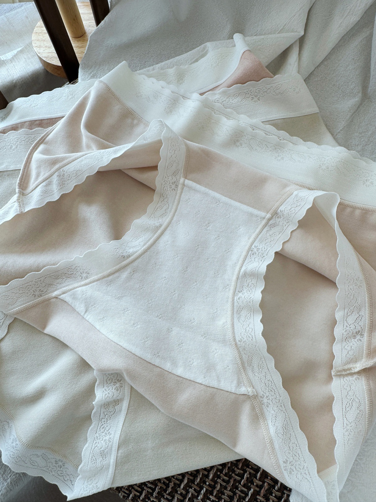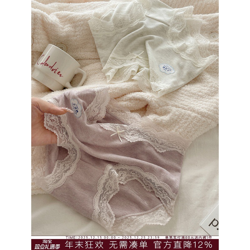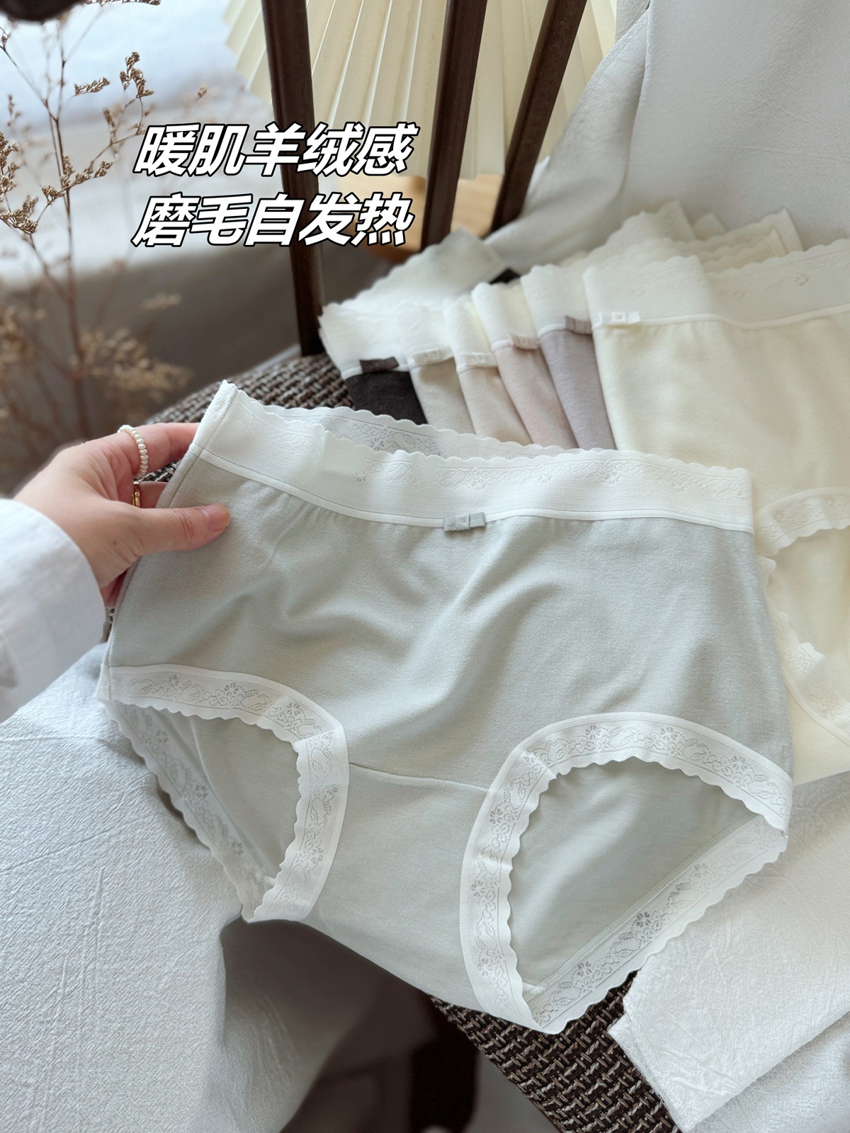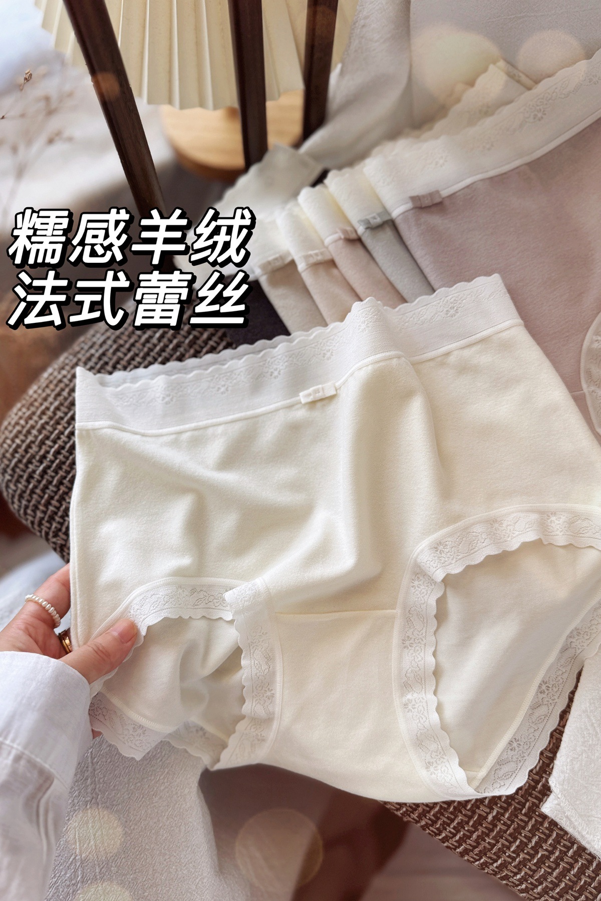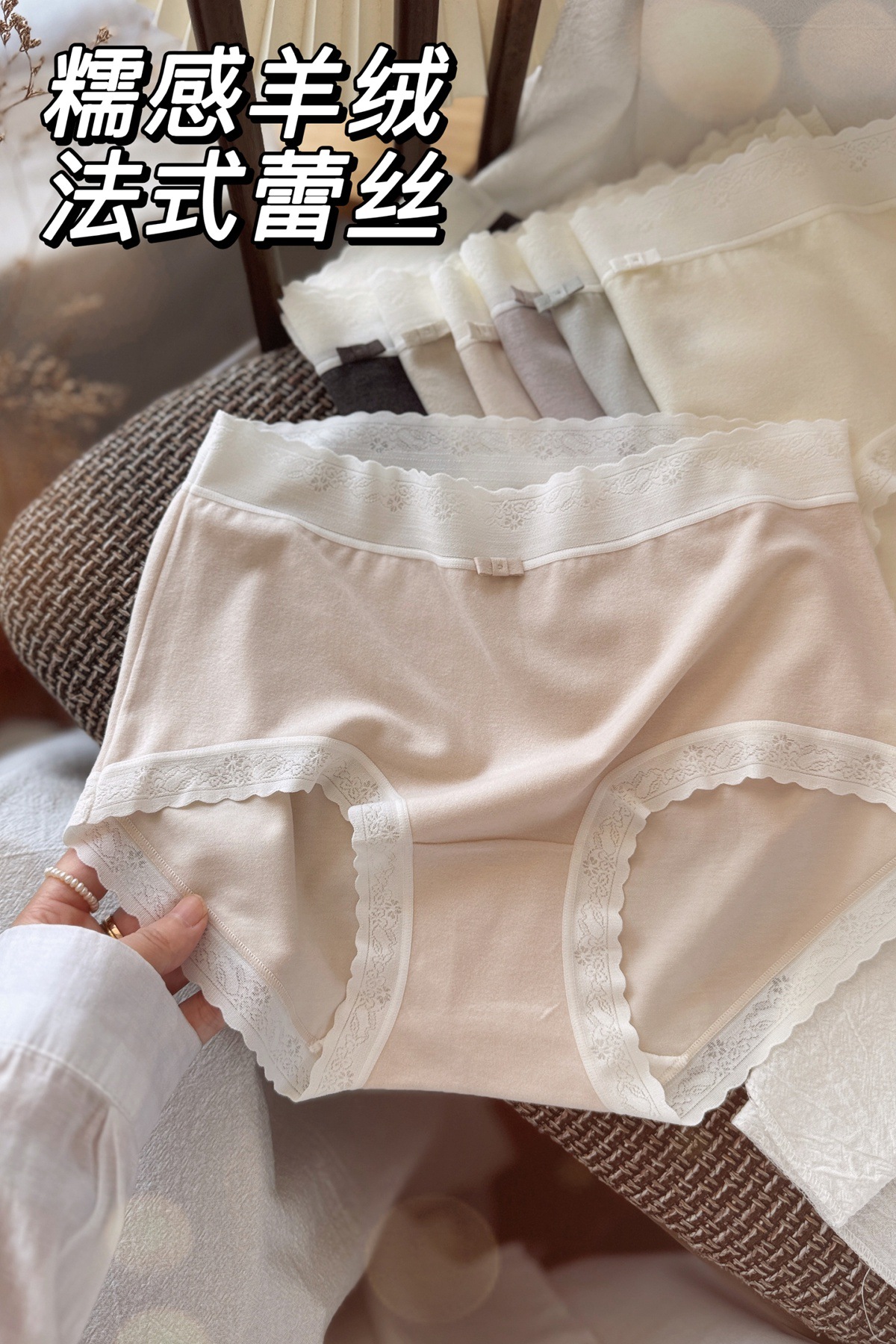 法式蕾丝边羊绒感磨毛发热内裤女秋冬桑蚕丝抗菌裆软糯舒适云朵裤