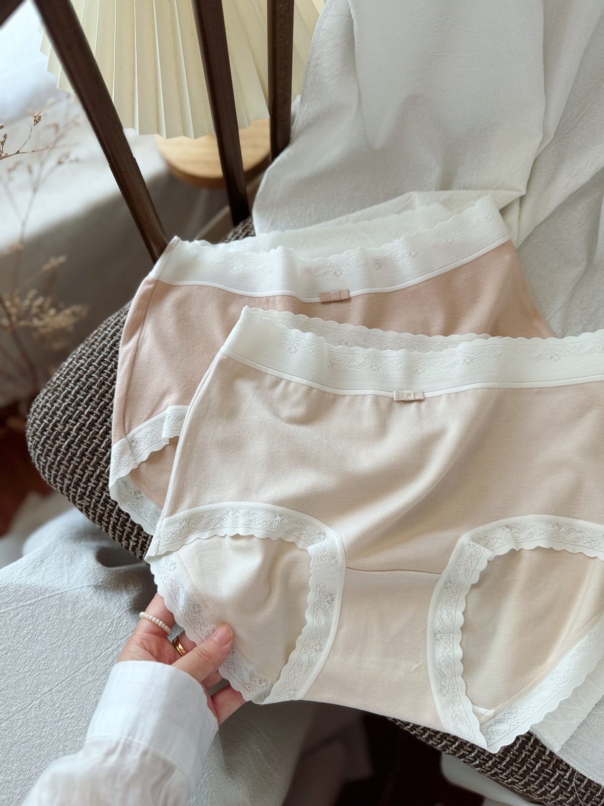 フランスの通気性のあるレースのブリーフ、新しい肌に優しいメッシュの女性用下着、ミッドハイウエスト、ヒップカバー、薄いクロッチパンツ