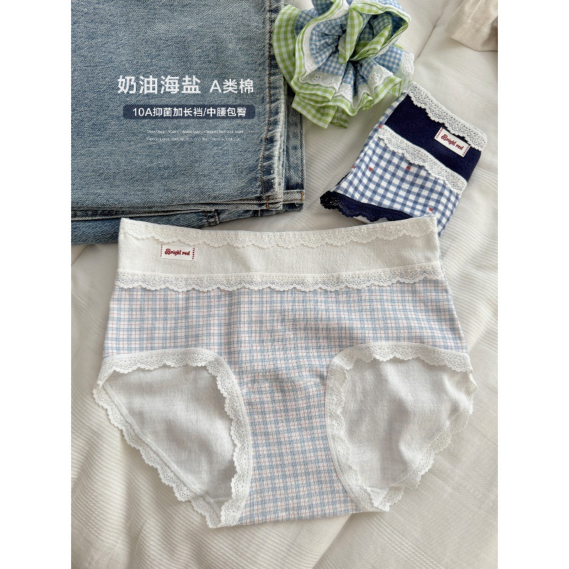 法式格子蕾丝腰A类棉内裤女透气柔软抑菌裆蕾丝蝴蝶结25新款