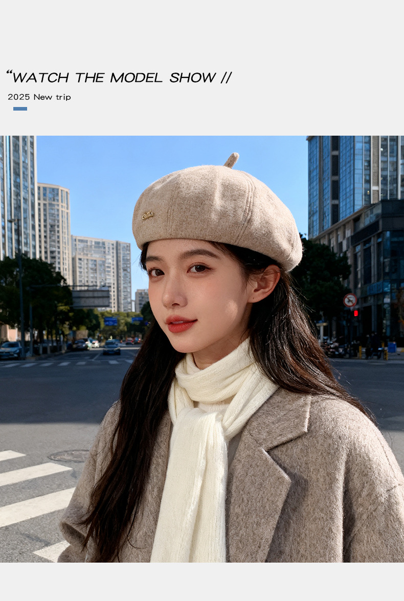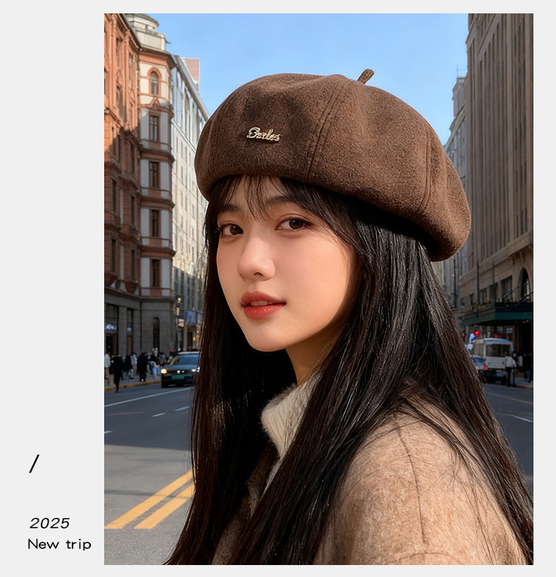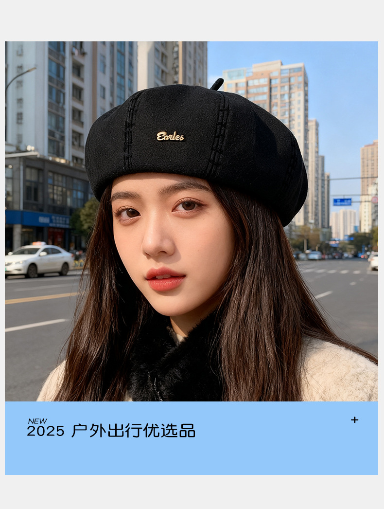 2025新款秋冬毛呢金属贝雷帽女韩系复古文艺甜美显脸小八角帽子潮
