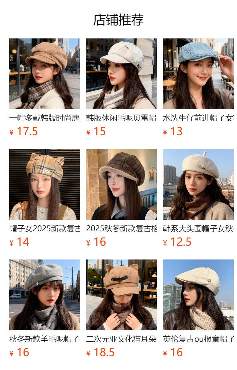 秋冬新款羊毛呢帽子女大头围显脸小贝雷帽秋冬日系文艺复古画家帽