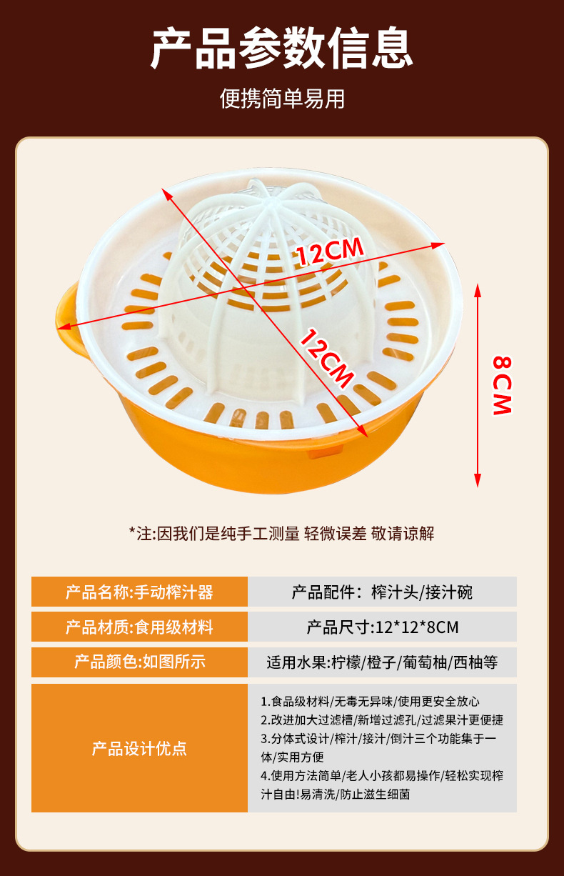 实惠轻便塑料手动榨汁器葡萄柚榨汁机橙子柠檬挤汁小型水果压汁器