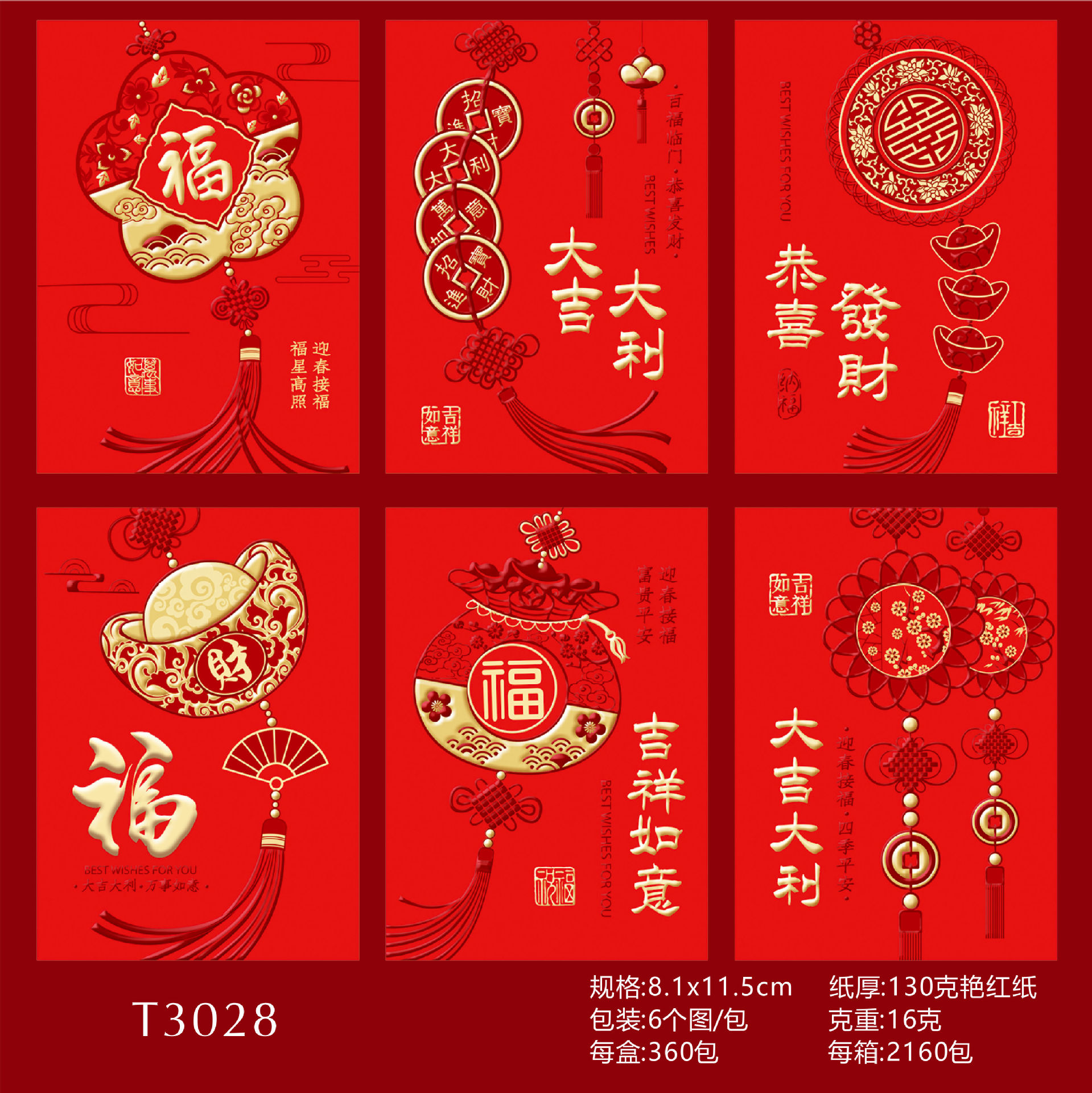 馬年用のロゴ入り春節用紅包、大吉大利、汎用、箔押し、クリエイティブ、シンプルな春節用紅包の卸売