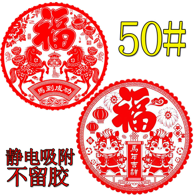 现货马年新年春节装饰贴画20张装窗花生肖福字静电免胶玻璃贴喜庆