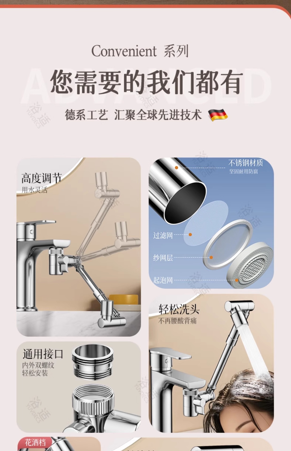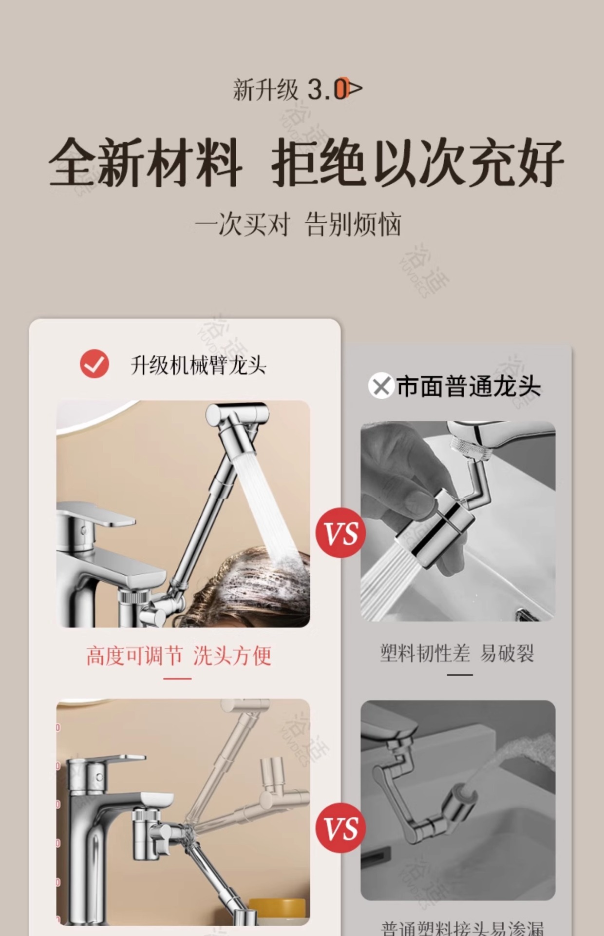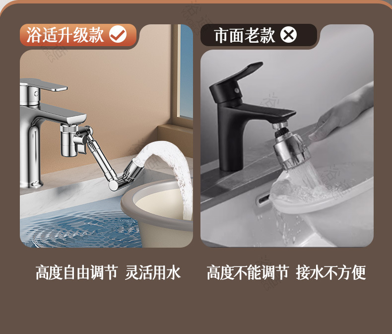 机械臂万向水龙头可旋转出水嘴延伸洗脸盆起泡器接头防溅神器摇臂