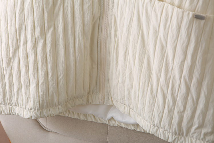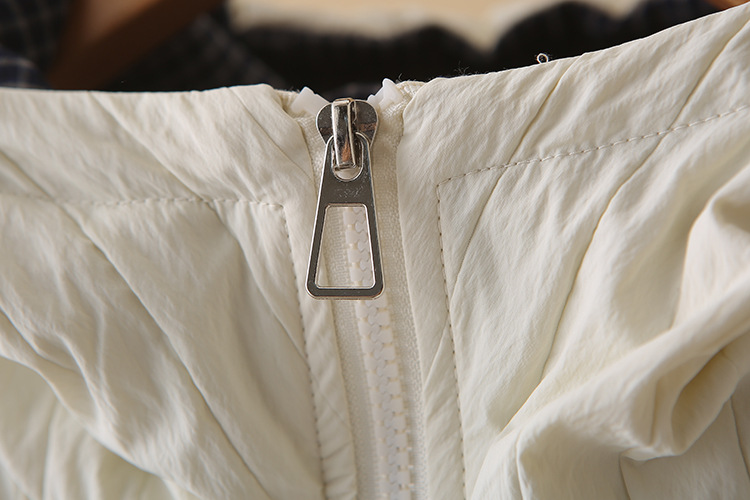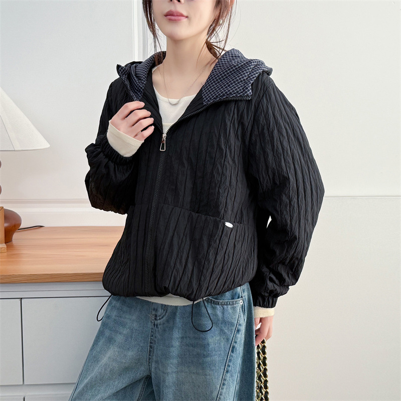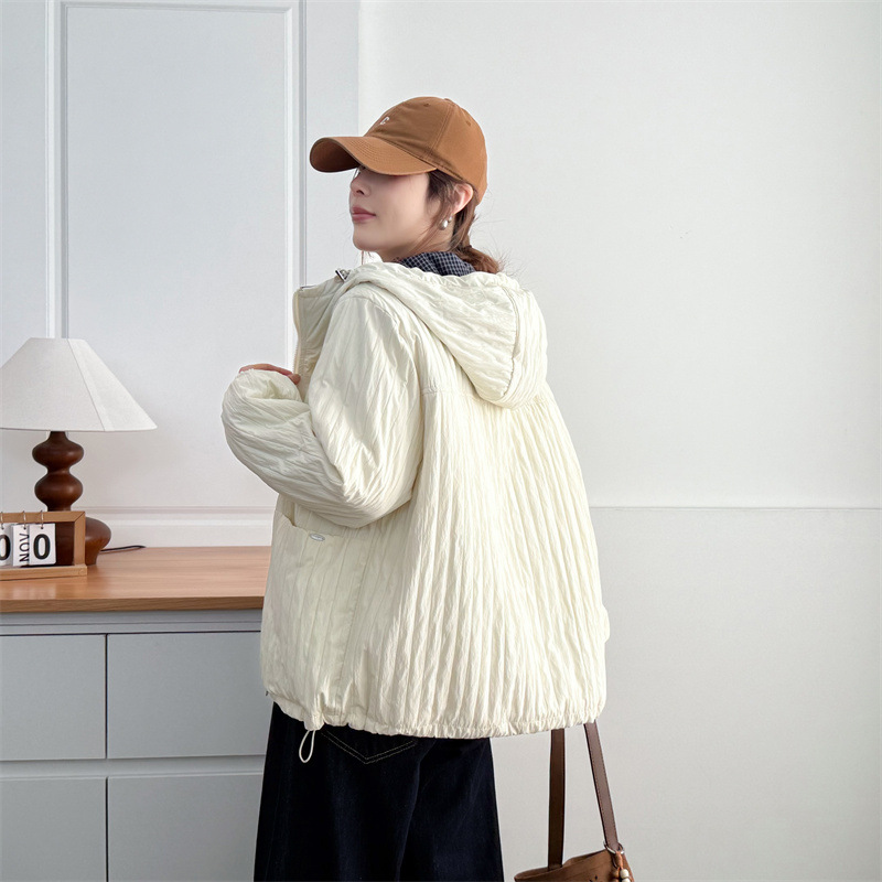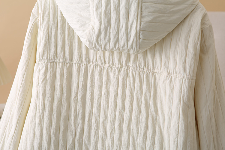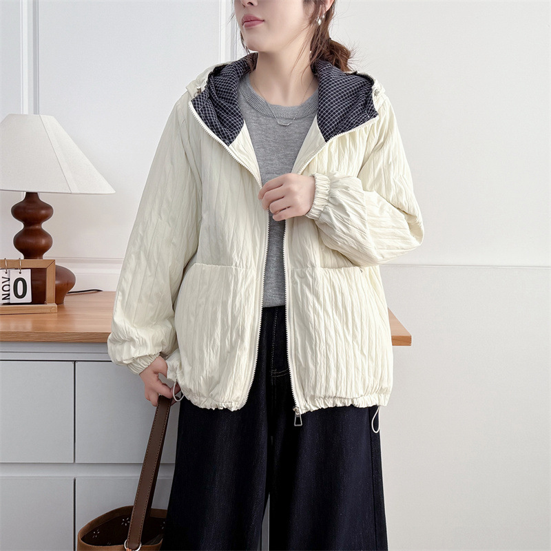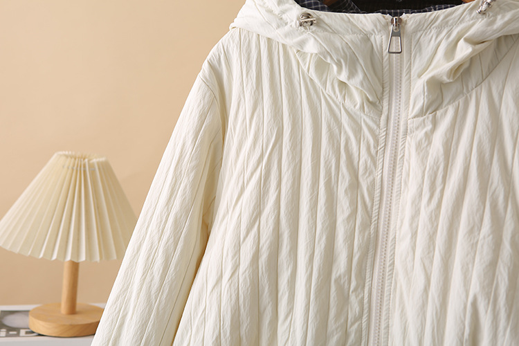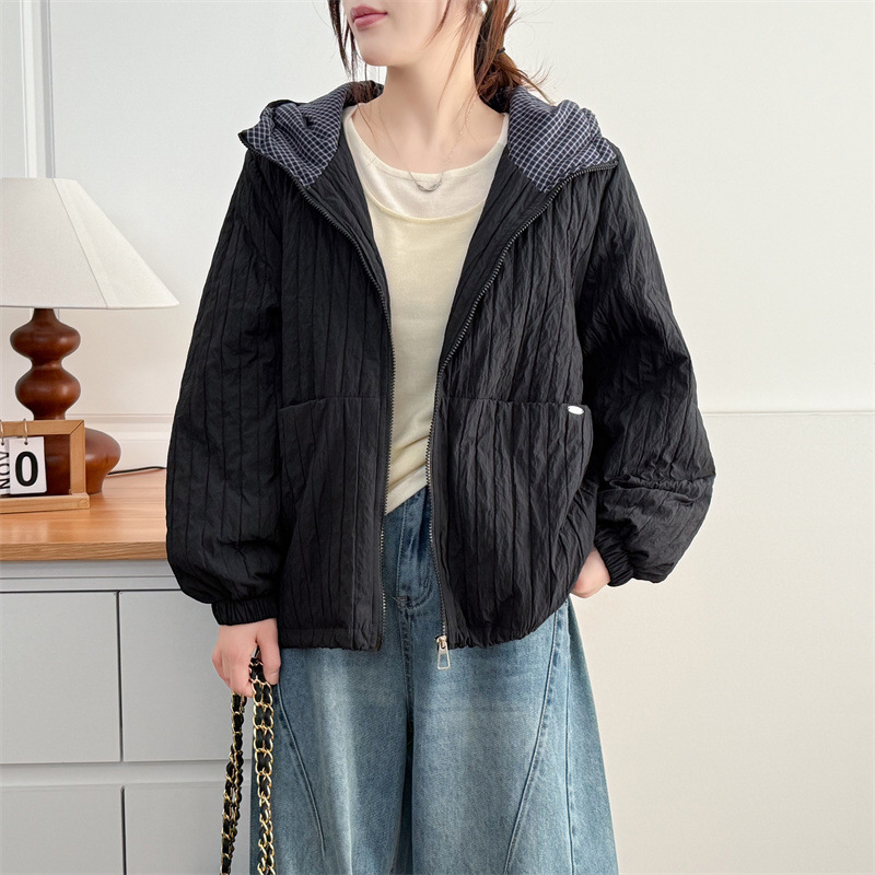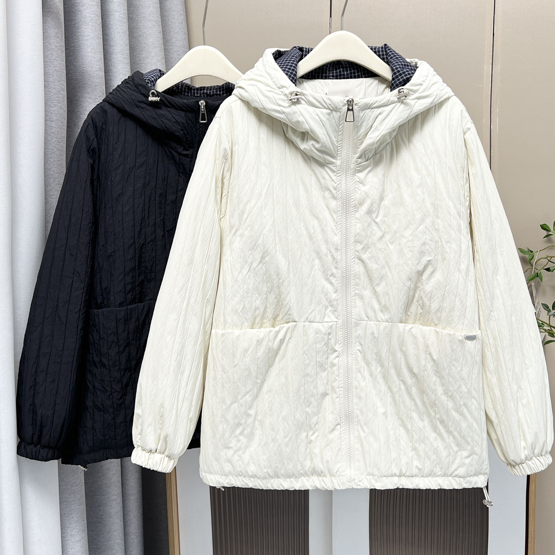 2025秋冬轻薄棉服女大码夹棉外套连帽简约竖条纹上衣胖mm棉衣1732