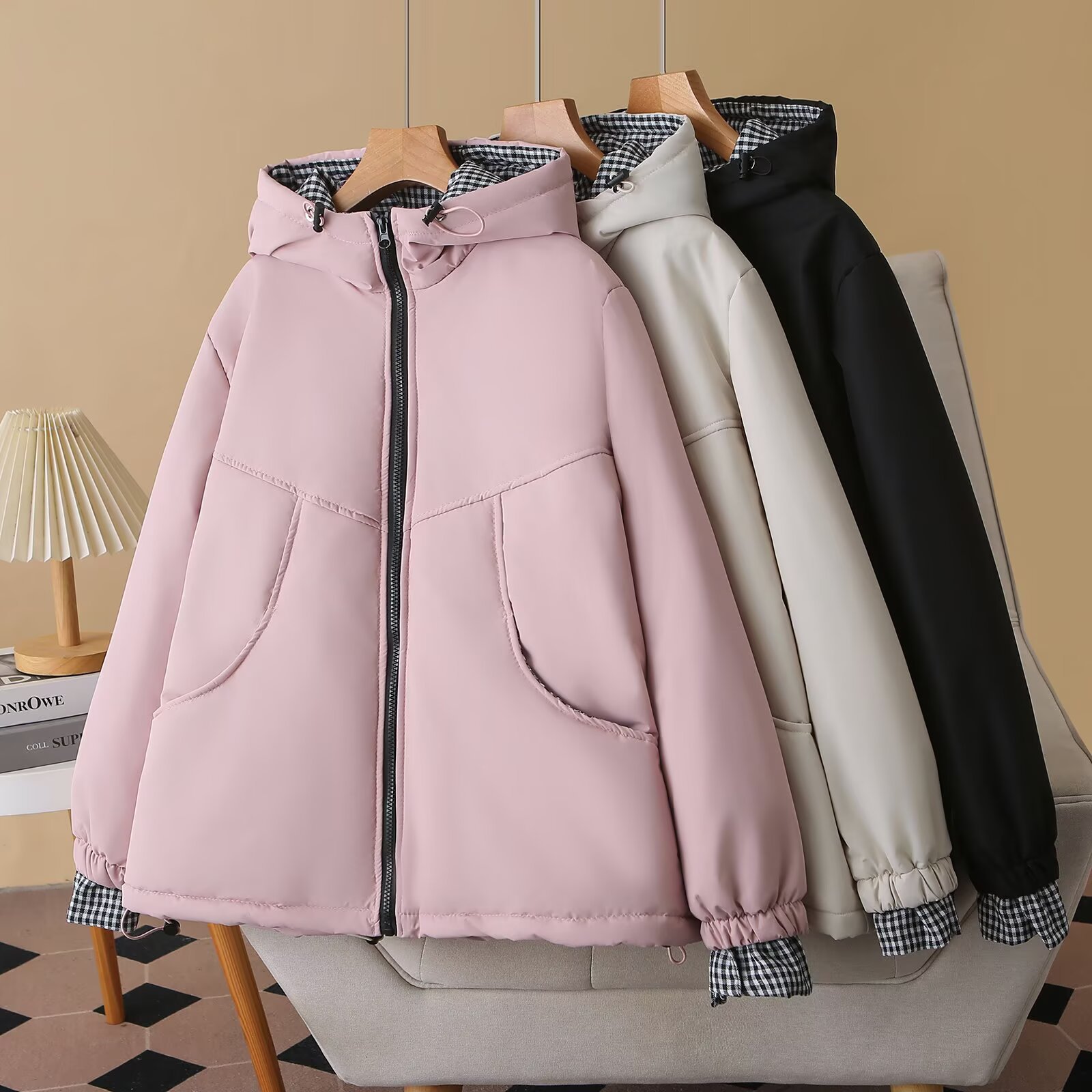 2025秋冬大码加厚派克服女外套夹棉连帽显瘦百搭胖妹简约棉衣2565