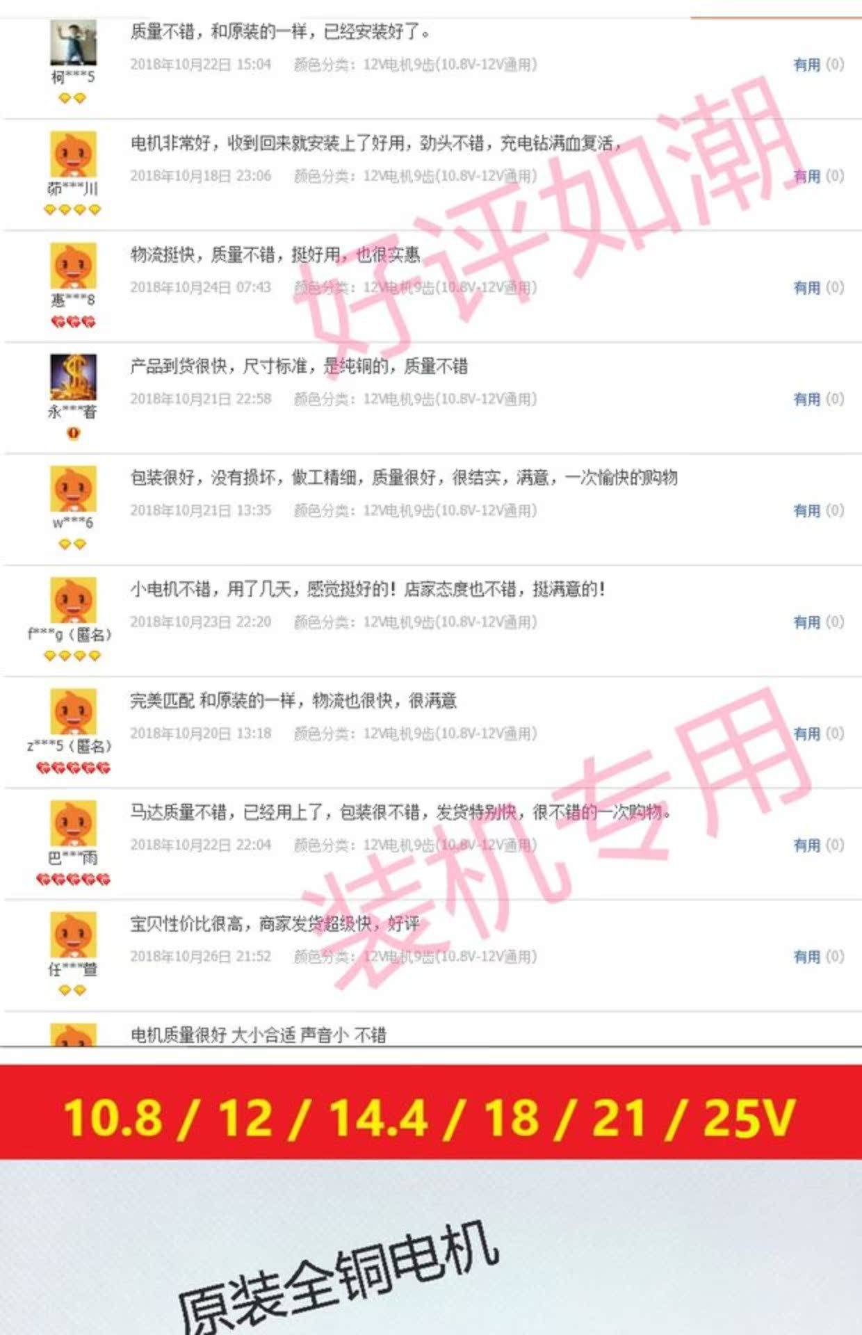 型号 电钻保养润滑脂30ml 一支,全铜RS550电机12V (9齿),全铜RS550电机12V (12齿),全铜RS550电机10.8V (9齿),全铜RS550电机10.8V (12齿),全铜RS550电机14.4V (9齿),全铜RS550电机14.4V (12齿),全铜RS550电机16.8V (9齿),全铜RS550电机16.8V (12齿),全铜RS550电机18V (9齿),全铜RS550电机18V (12齿),全铜RS550电机21V (9齿),全铜RS550电机21V (12齿),全铜RS550电机21.6V (12齿),全铜RS550电机24V (12齿),全铜RS550电机25V (12齿),龙韵款25V(12齿)电机,富格款25V(12齿)电机,加强款24/25V(12齿)电机,原装单手锯21V(14齿)电机,锂电洗车枪550电机21V(D轴)