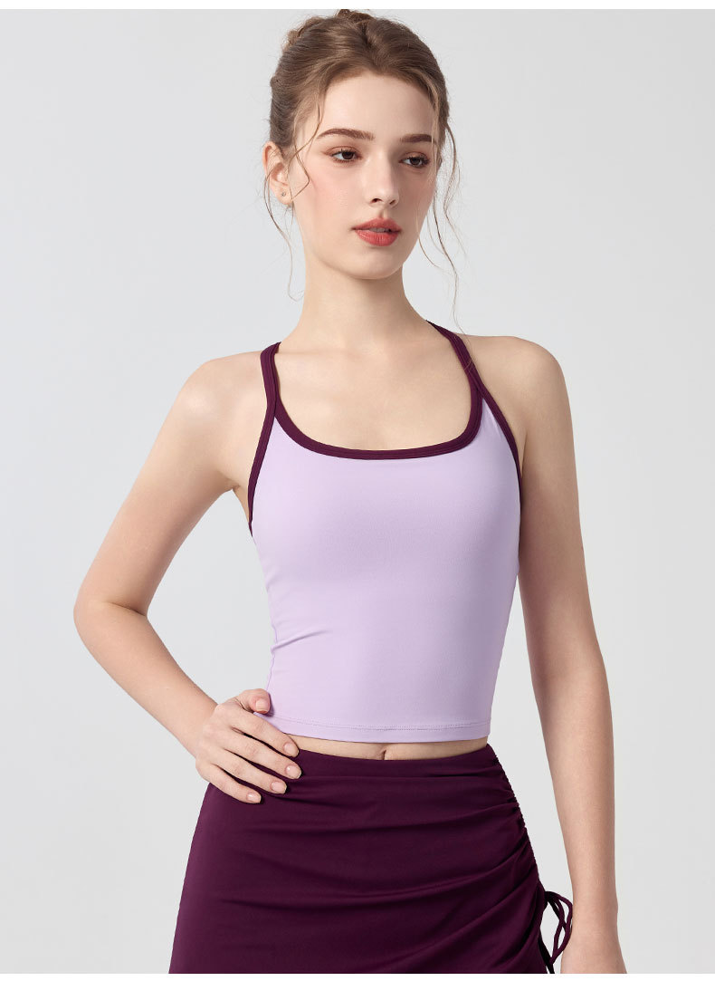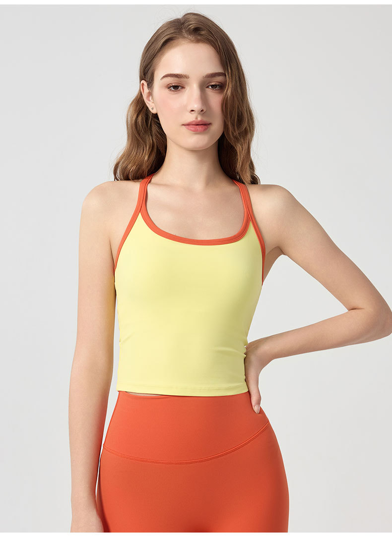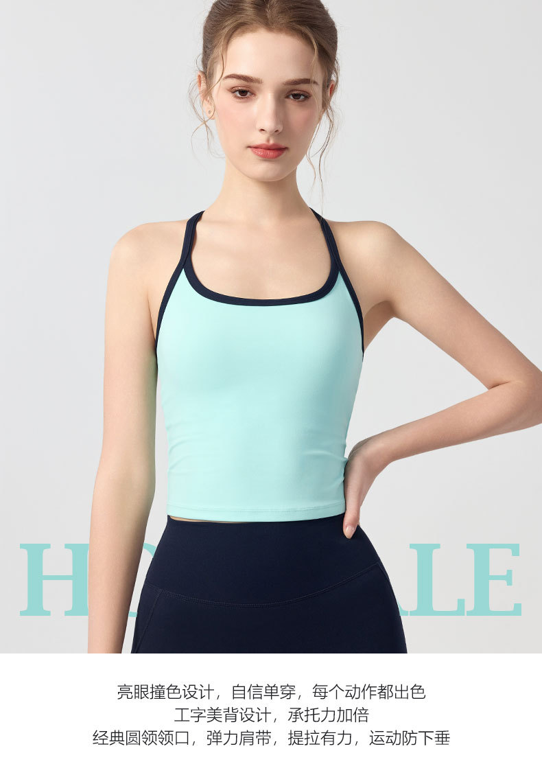 一体式工字美背背心防震外穿瑜伽服运动内衣普拉提训练撞色吊带女