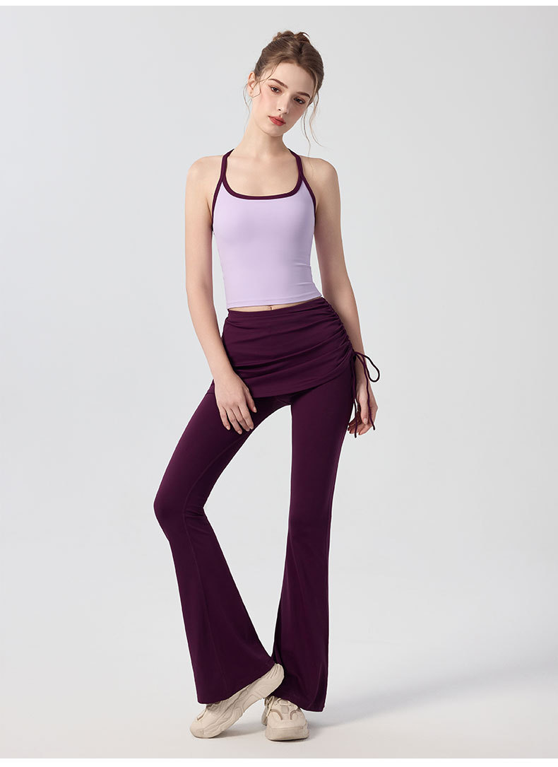 气质御姐假两件抽绳喇叭裤女修身长款遮臀瑜伽裙裤普拉提运动长裤