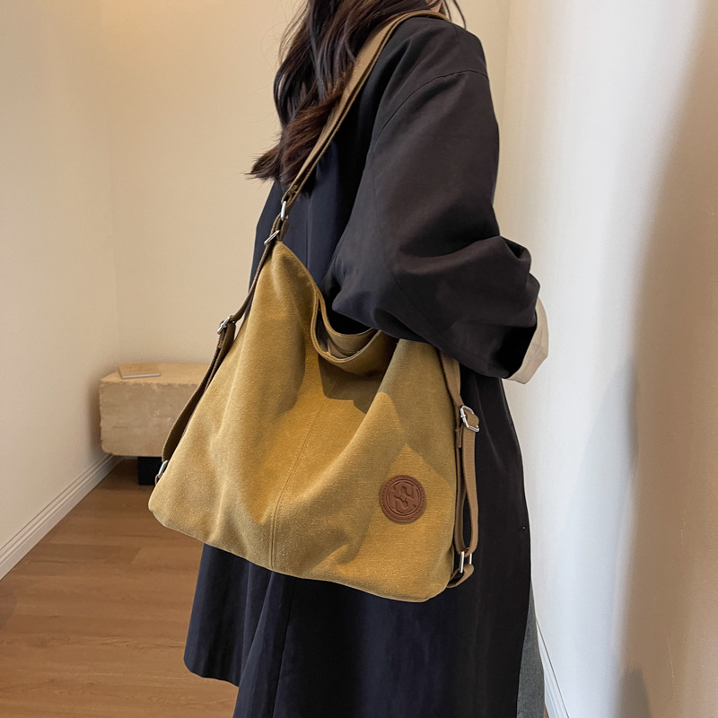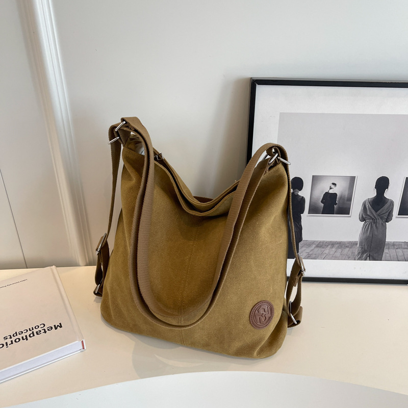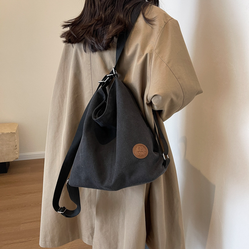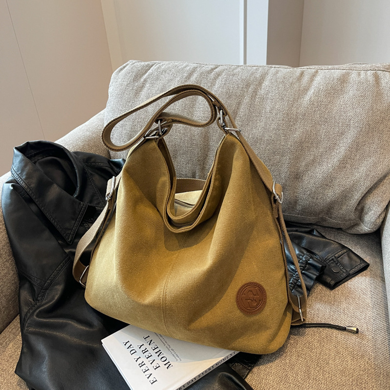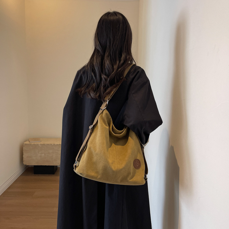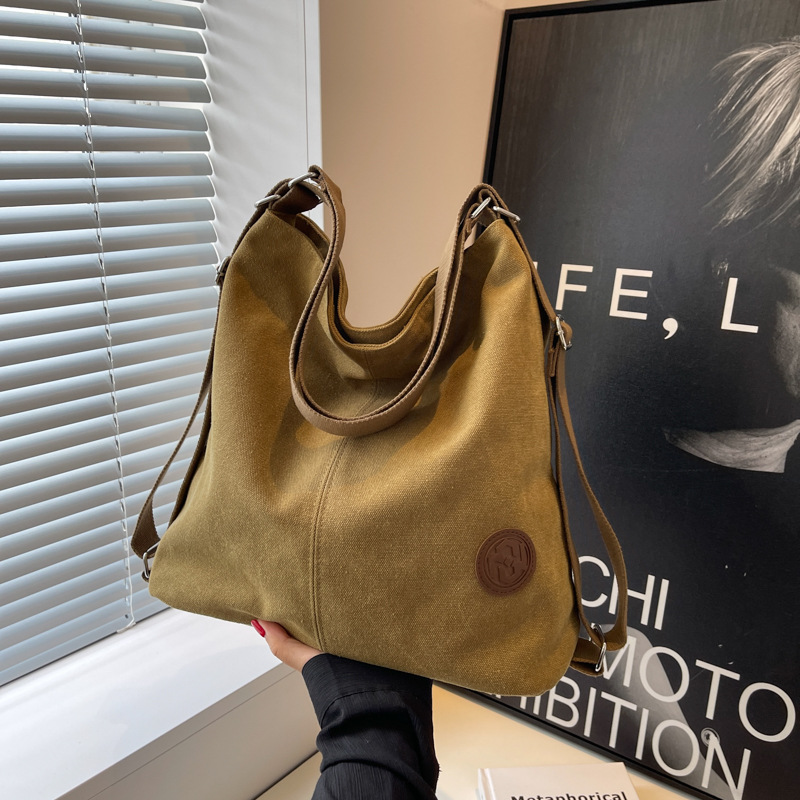 包包大容量女2025新款大容量双肩女包慵懒风单肩包帆布包大容量