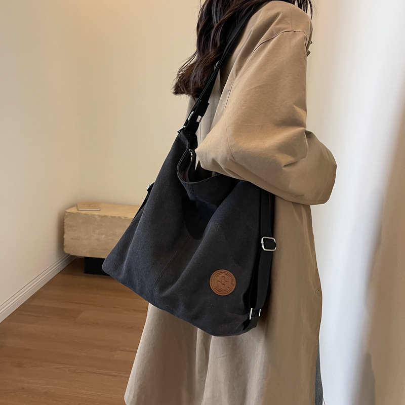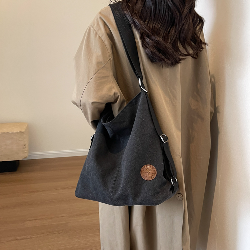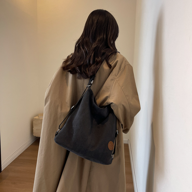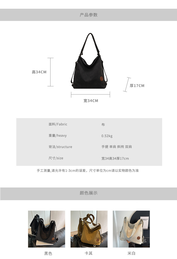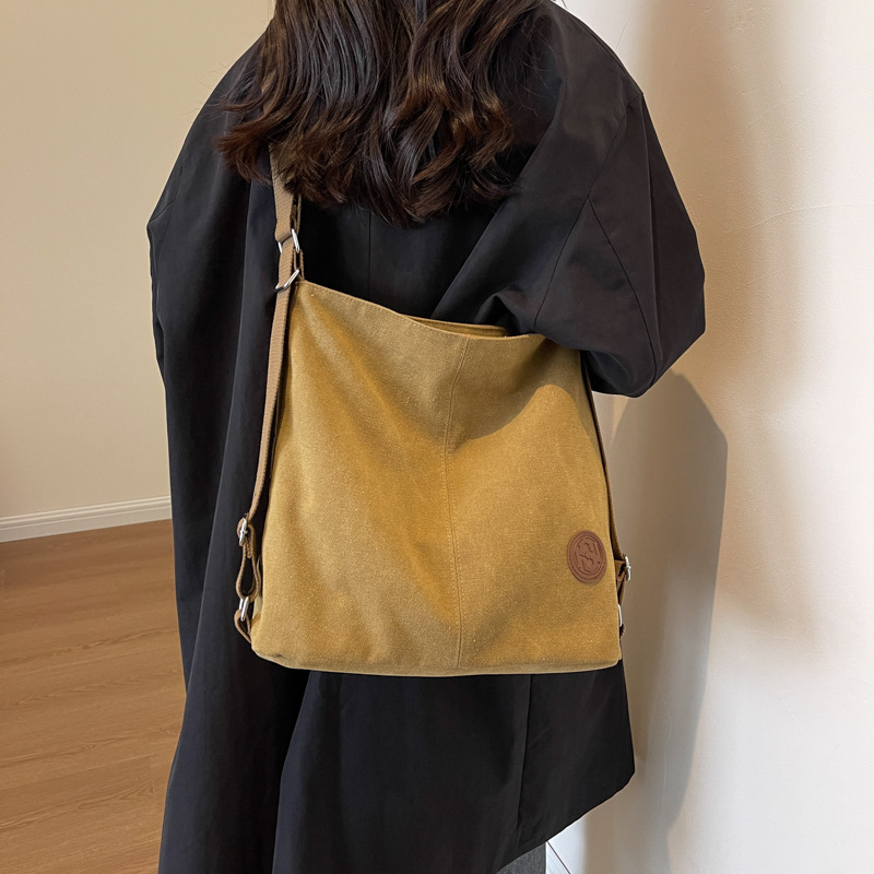 包包大容量女2025新款大容量双肩女包慵懒风单肩包帆布包大容量
