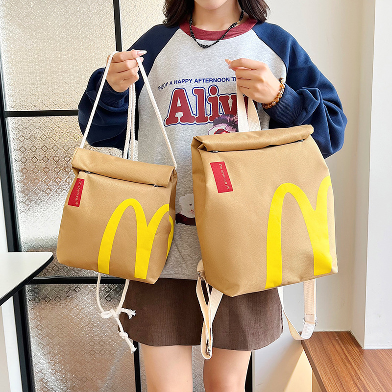 マクドナルドランドセル2025新型大容量カジュアルネット赤リュックサックハンバーガー紙袋バッグ学生授業バッグ
