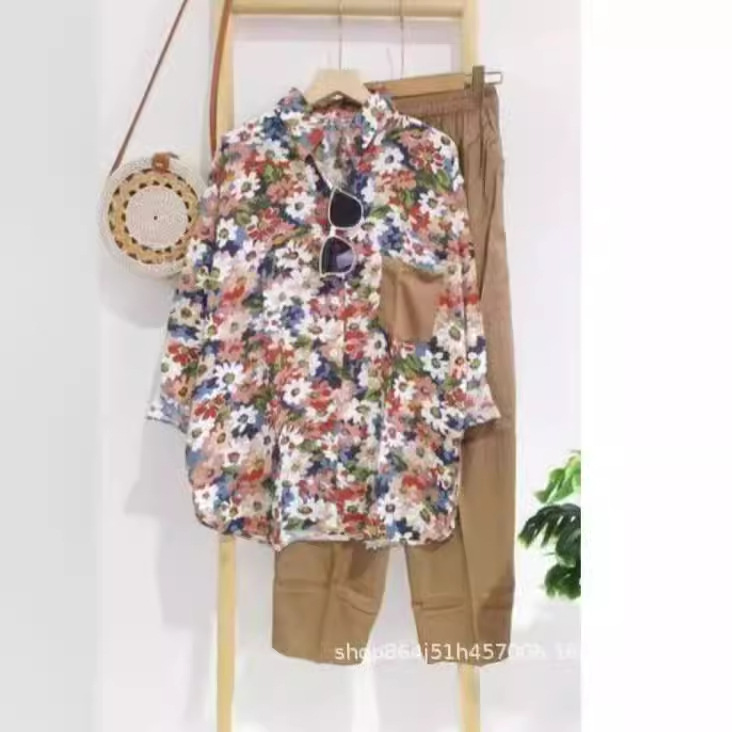 アマゾンクロスボーダー夏新作ファッション上品デザイン感プリントPOLO襟カジュアルスーツ女性卸
