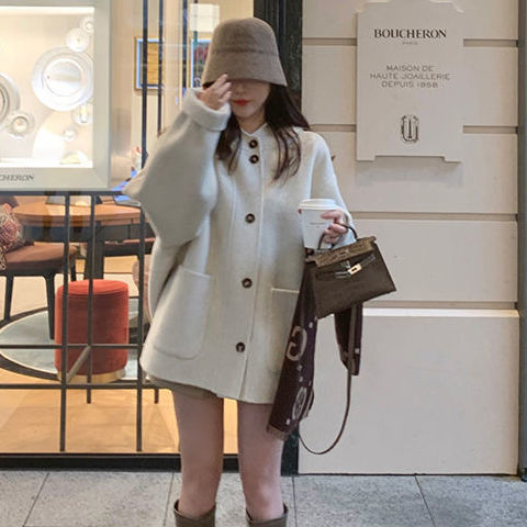 小柄な中長のラシャのコート2024秋冬の韓国版の新型のヘボン風のゆったりした毛のコートの女性の卸売り