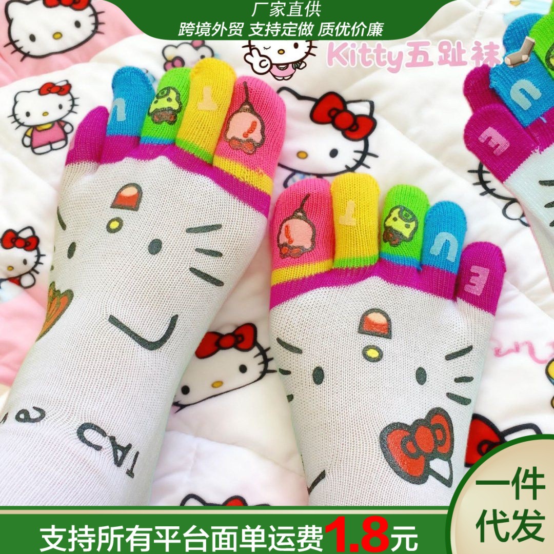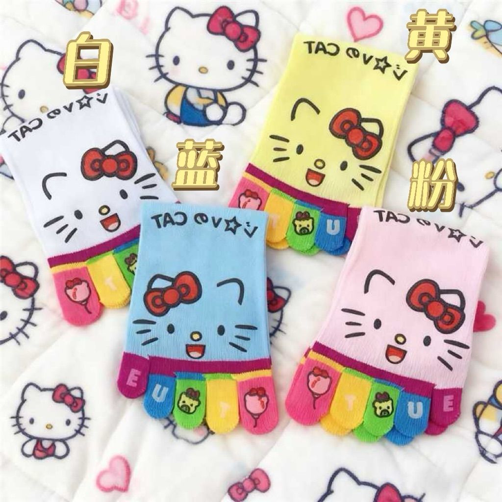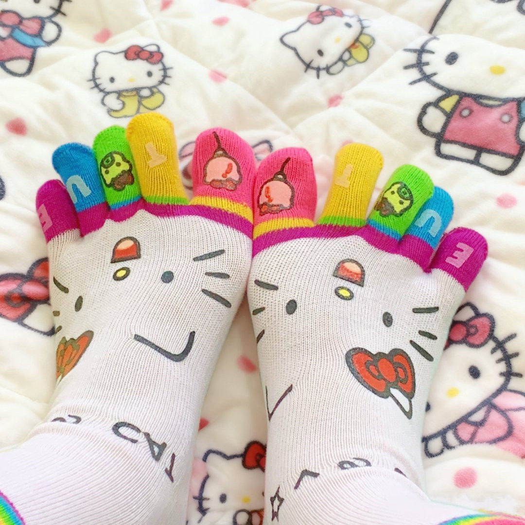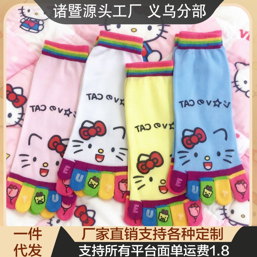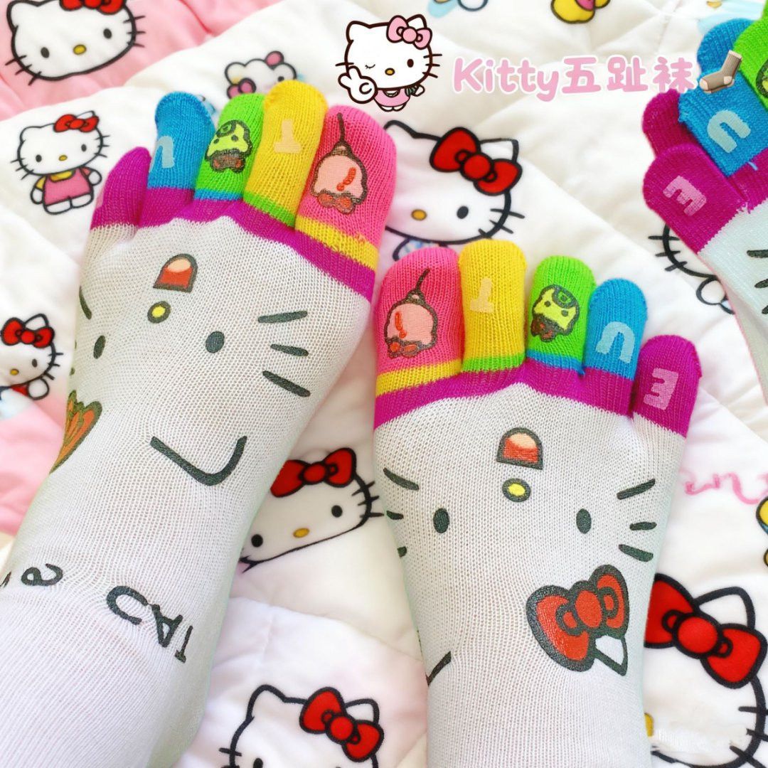 凯蒂猫彩虹五指高颜值款中筒袜女生防臭分趾学生穿搭的多巴胺袜子