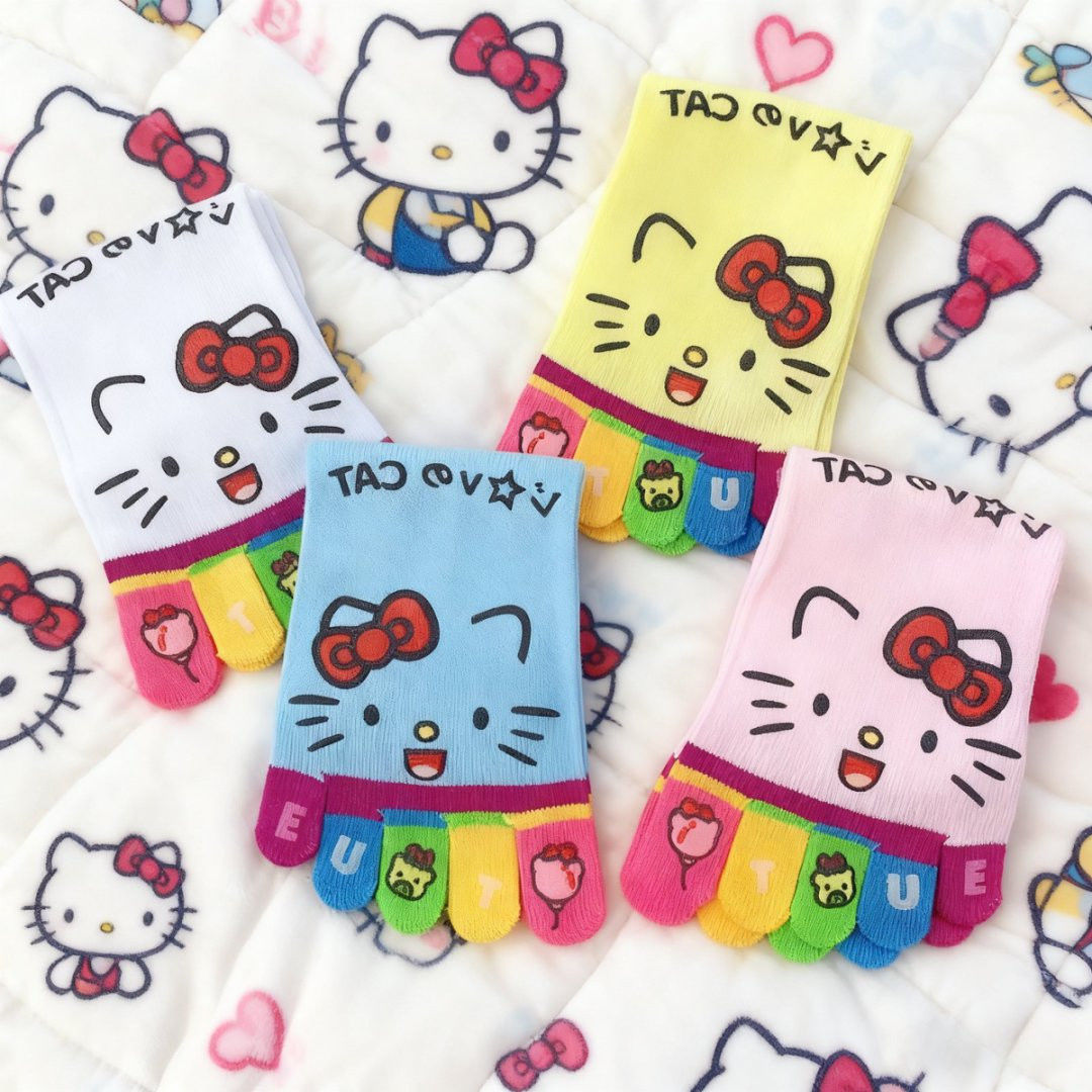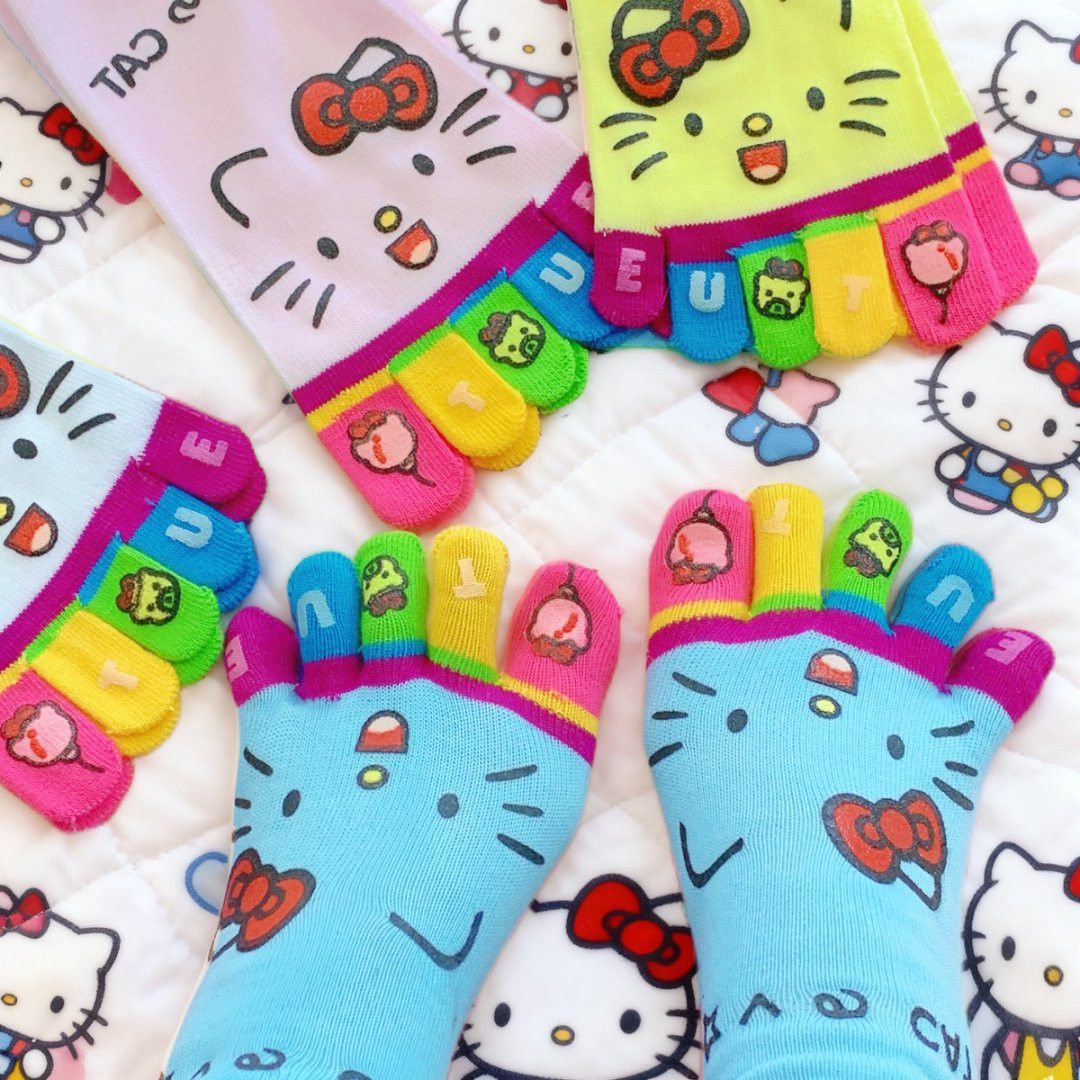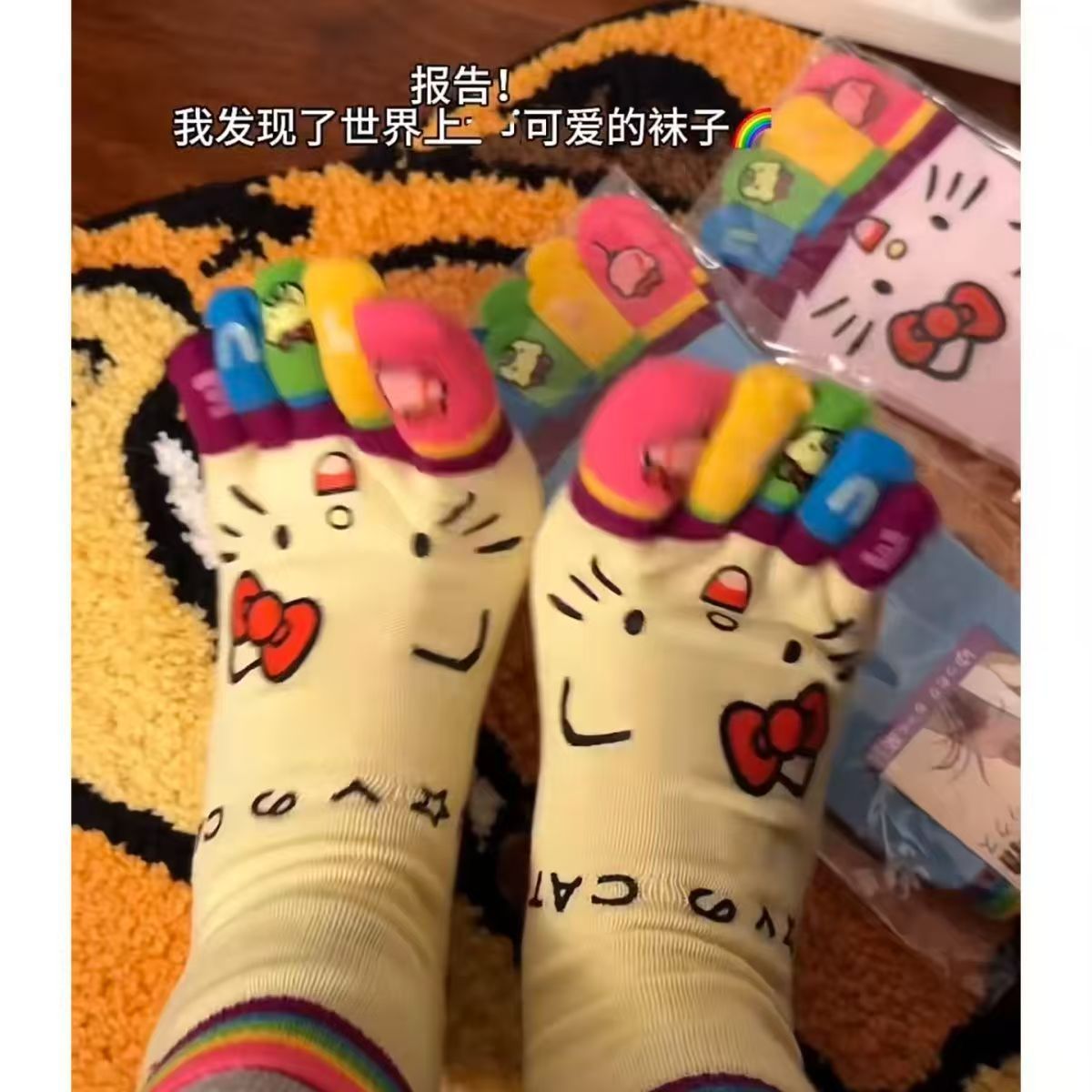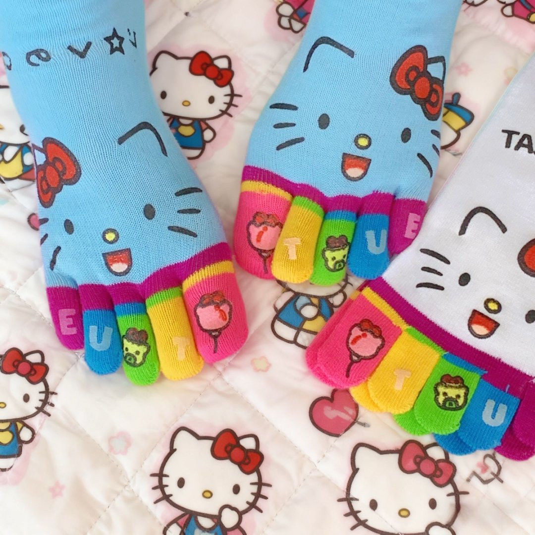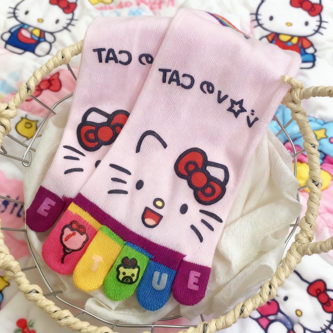 凯蒂猫彩虹五指高颜值款中筒袜女生防臭分趾学生穿搭的多巴胺袜子