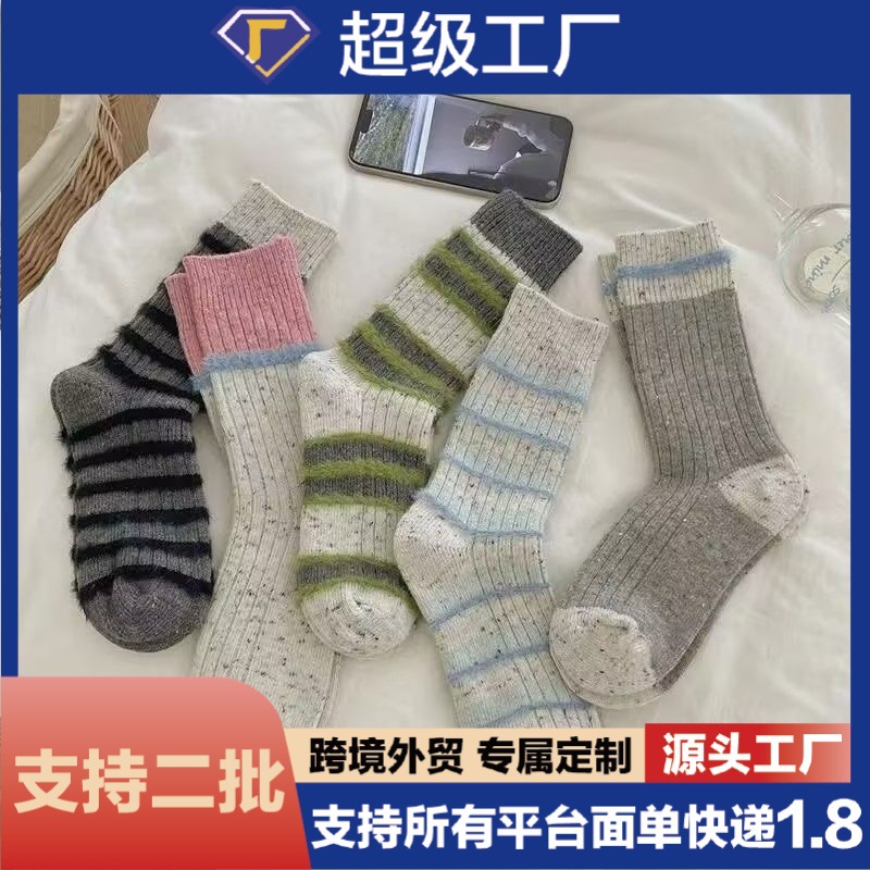 女款秋冬2025新款爆款复古拼色羊毛运动袜堆堆袜女生可爱百搭中筒