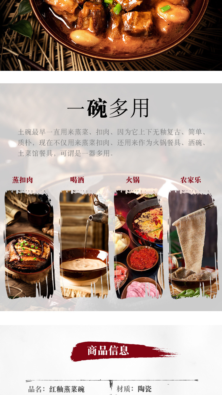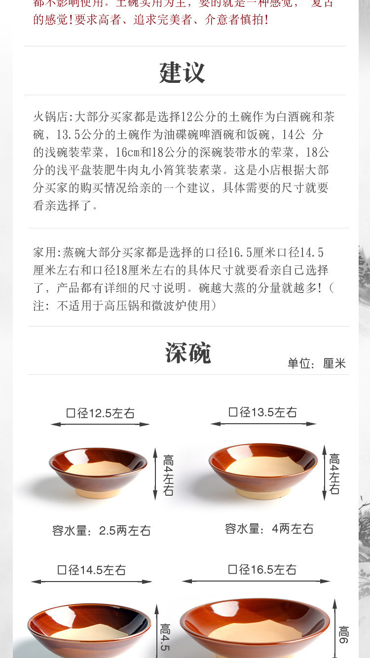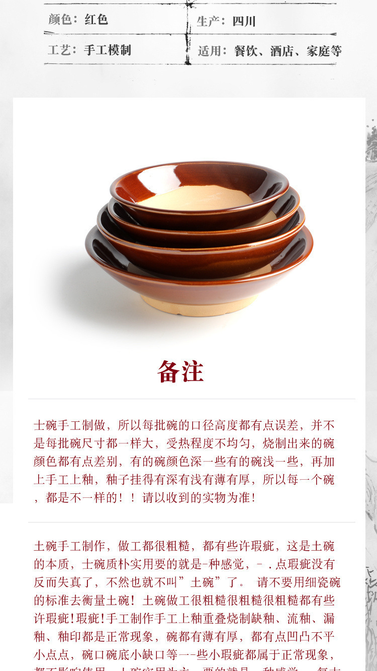 扣碗火锅碗梅菜扣肉碗老式土碗酒碗古风粗碗土陶餐具粗陶土巴碗