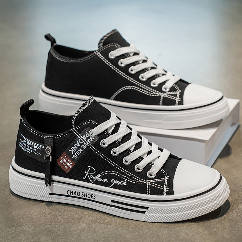 魔术贴休闲百搭2025新款板鞋男鞋一脚蹬帆布鞋时尚潮流运动鞋学生