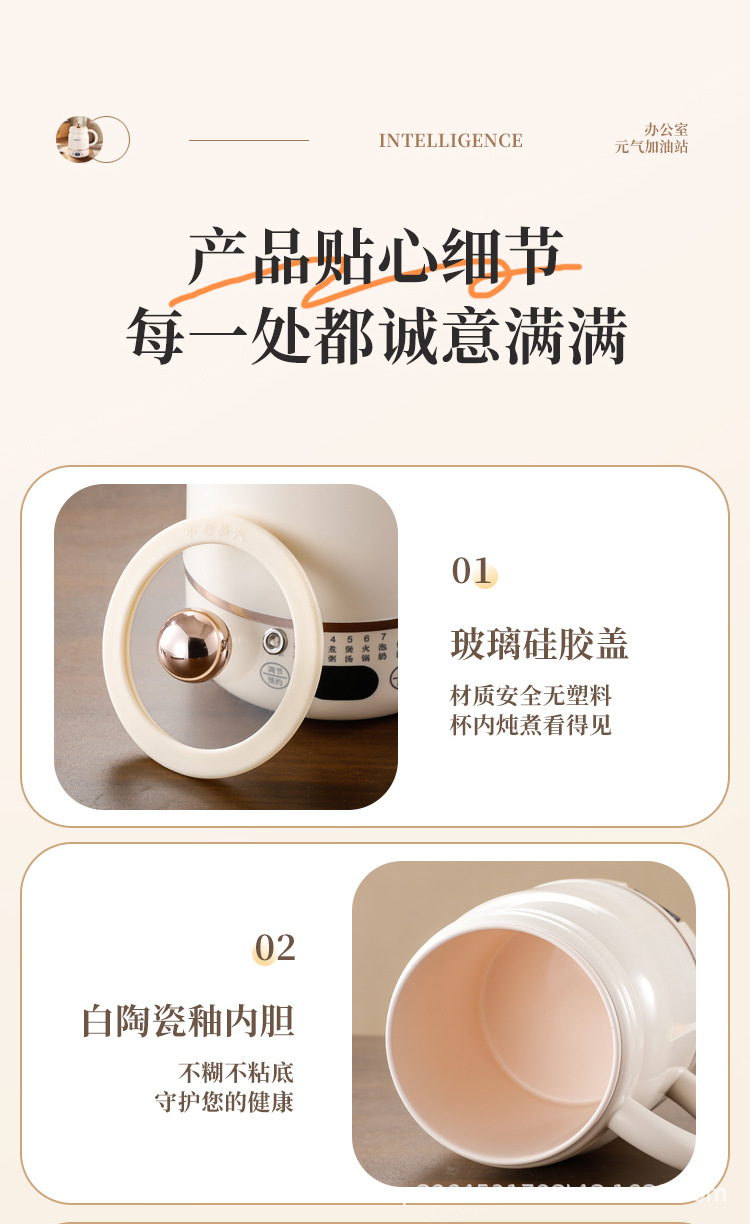 热牛奶杯办公迷你养生杯家用多功能杯早餐杯宿舍电煮杯陶瓷轴内胆